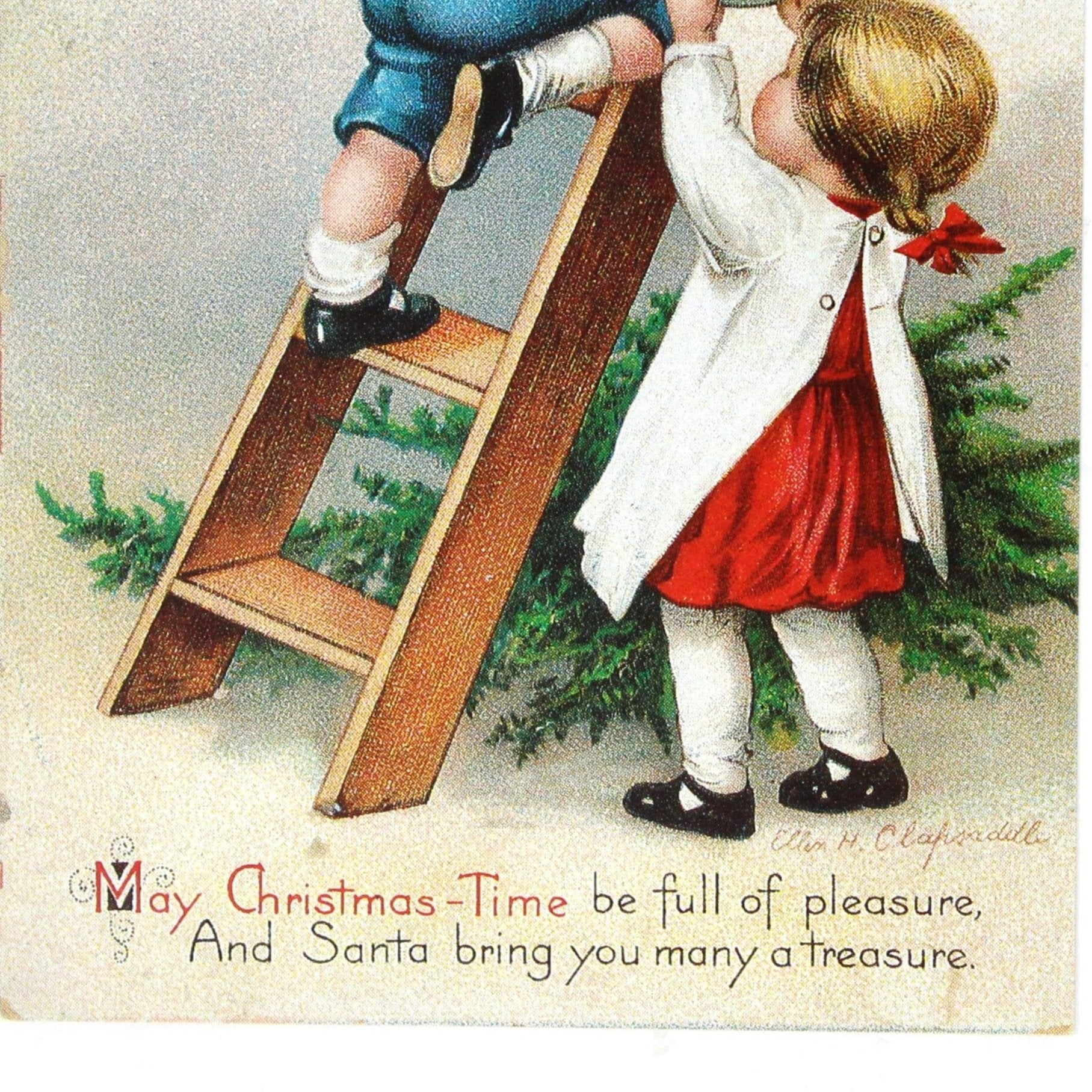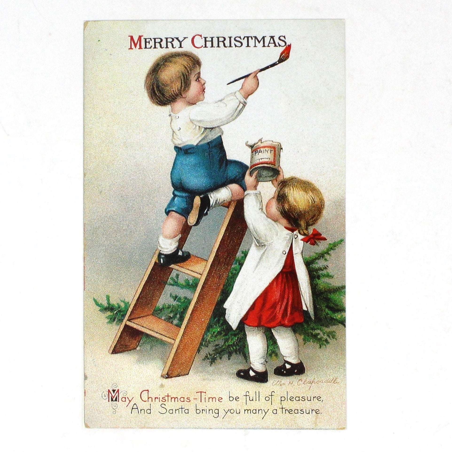 - Antique Reproduction, Christmas Postcard Unused, Signed by Ellen Clapsaddle, The Busy Painter, Ephemera, Victorian Children, Deltiologist Collectibles, (Discontinued)