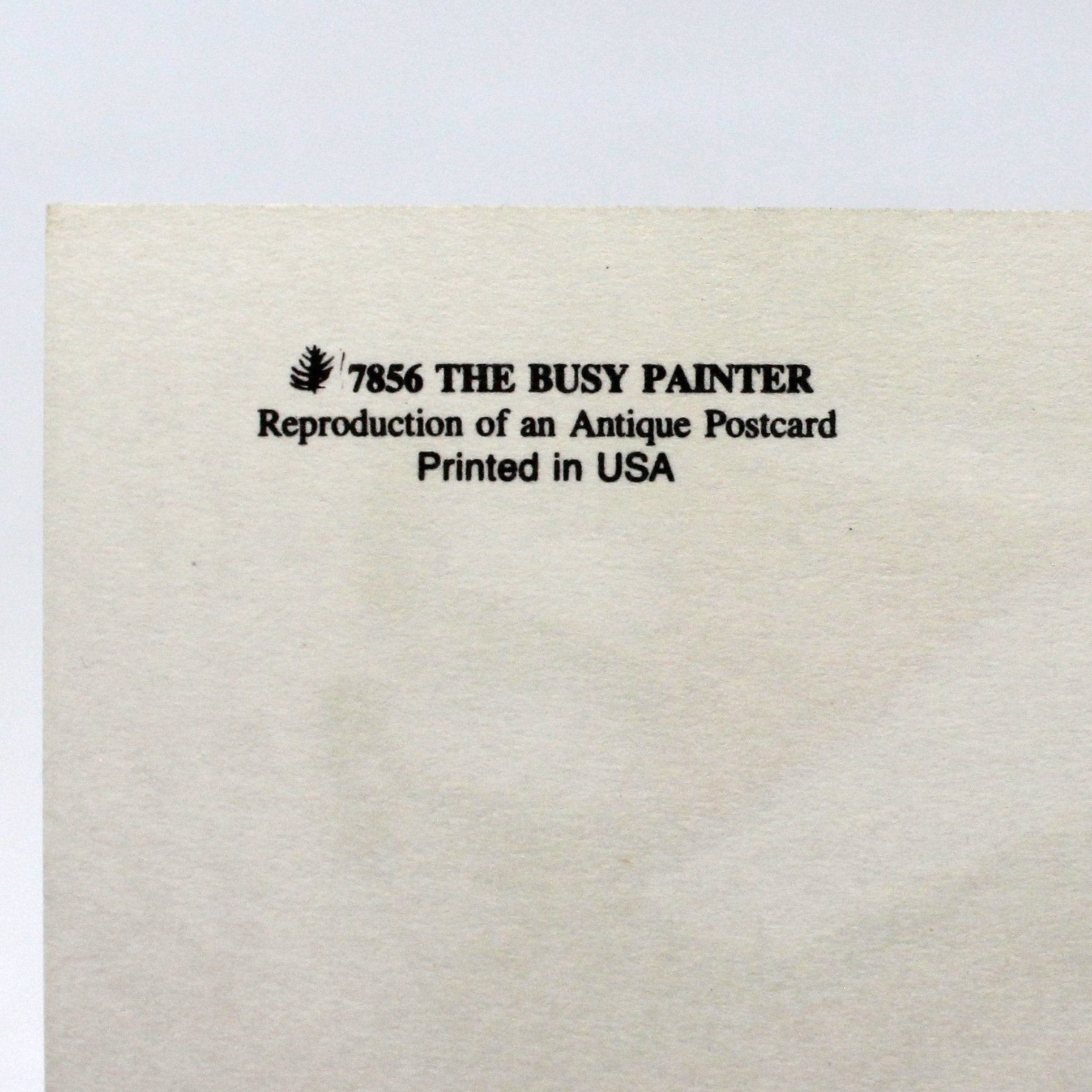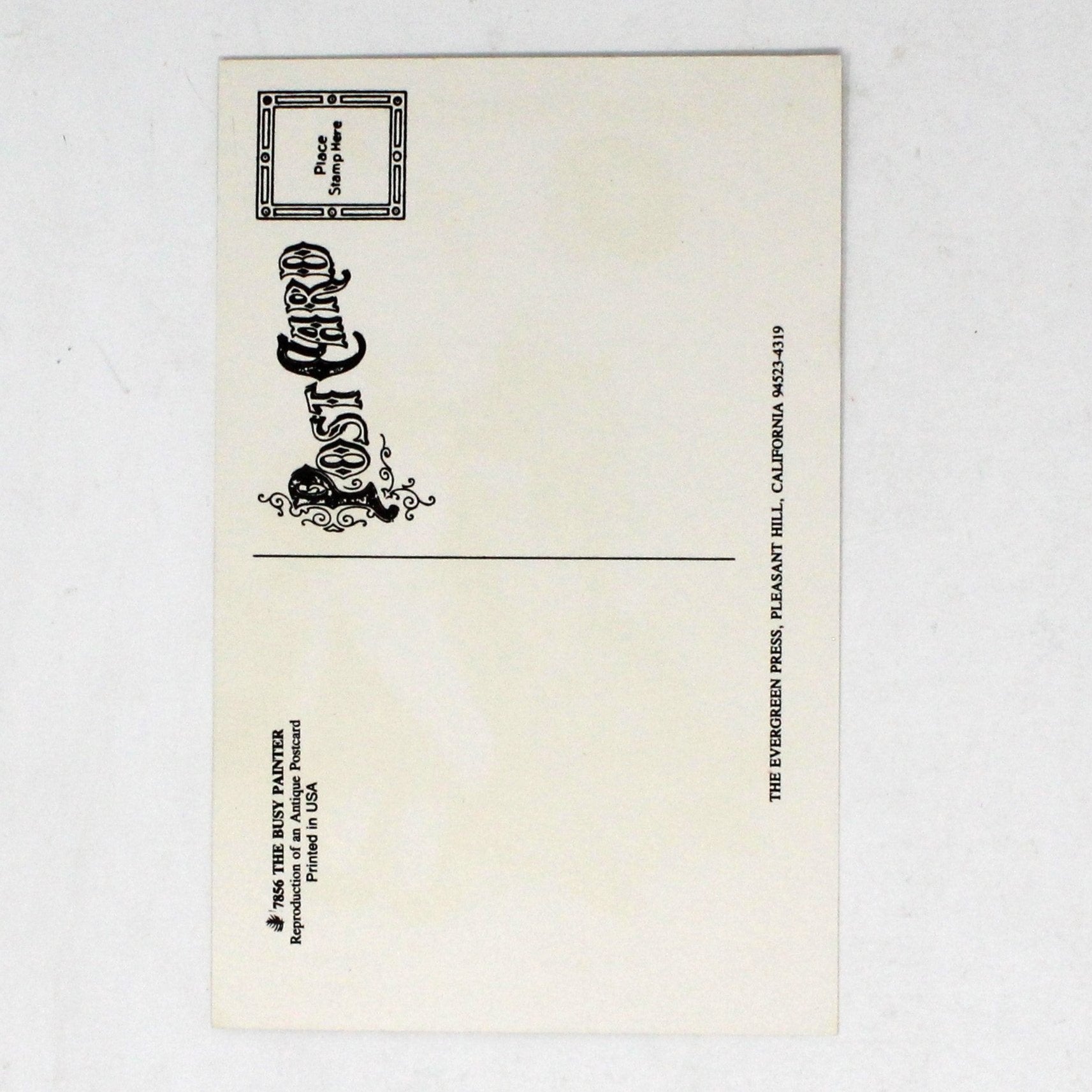 - Details: From a much loved illustrator, Ellen Clapsaddle (1865 - 1934), this highly prized illustration titled: The Busy Painter. Shows two Victorian era children, a boy on a ladder painting, and the girl holding the paint bucket. It's an authorized reproduction by The Evergreen Press in California (founded 1968). It is not used, no writing, never mailed. A wonderful gift for a postcard collector or an Ellen Clapsaddle fan. Also perfect for decorations and Christmas holiday displays.