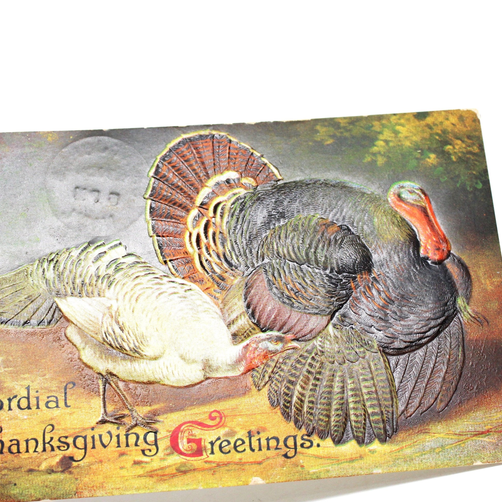 - Antique Original Thanksgiving Postcard, Embossed Illustration Two Turkeys, Male & Female (Tom & Hen), Lithograph, Germany Ephemera, Deltiologist Collectibles, Fall Decor, Used, Holiday Postcard, (Discontinued)