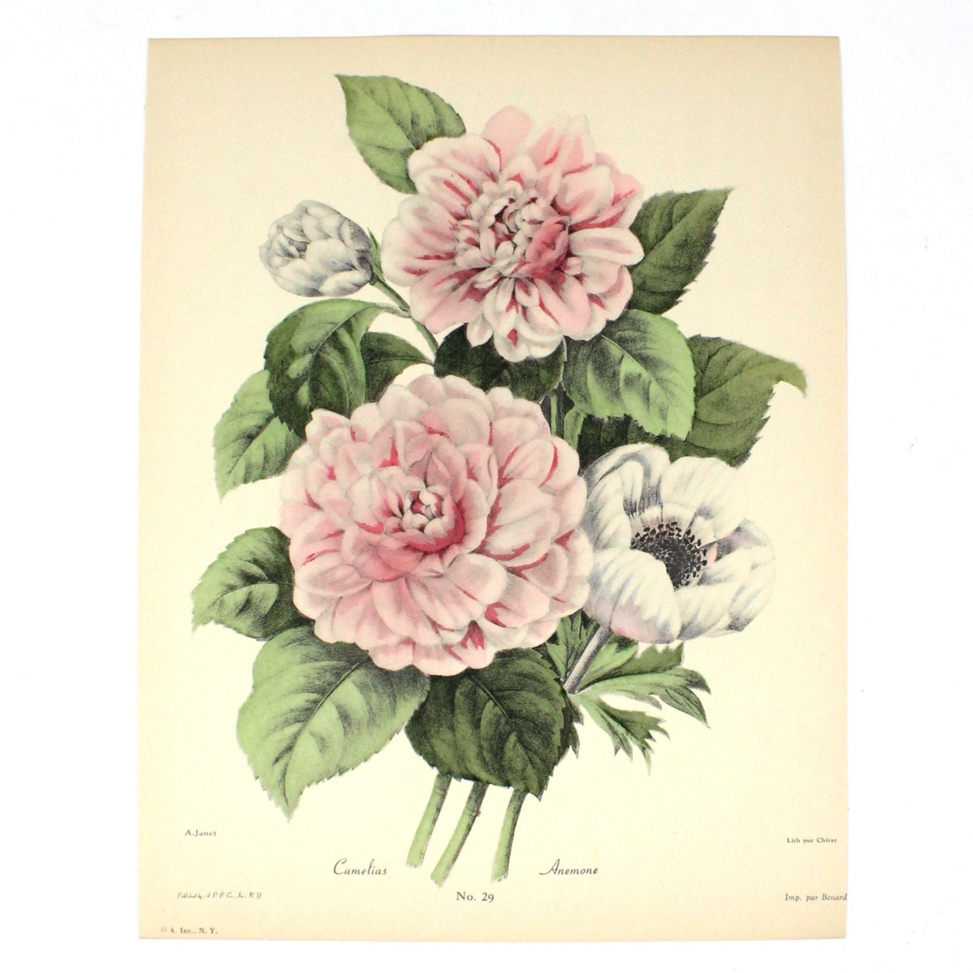 - Vintage Botanical Lithograph, Pink Camelias & Anemone, Plate #29, Litho by French Artist Chirat, Camellias Floral Print, Frameable, Spring / Summer Wall Decor, Flower Lovers, Ephemera, (Discontinued)
