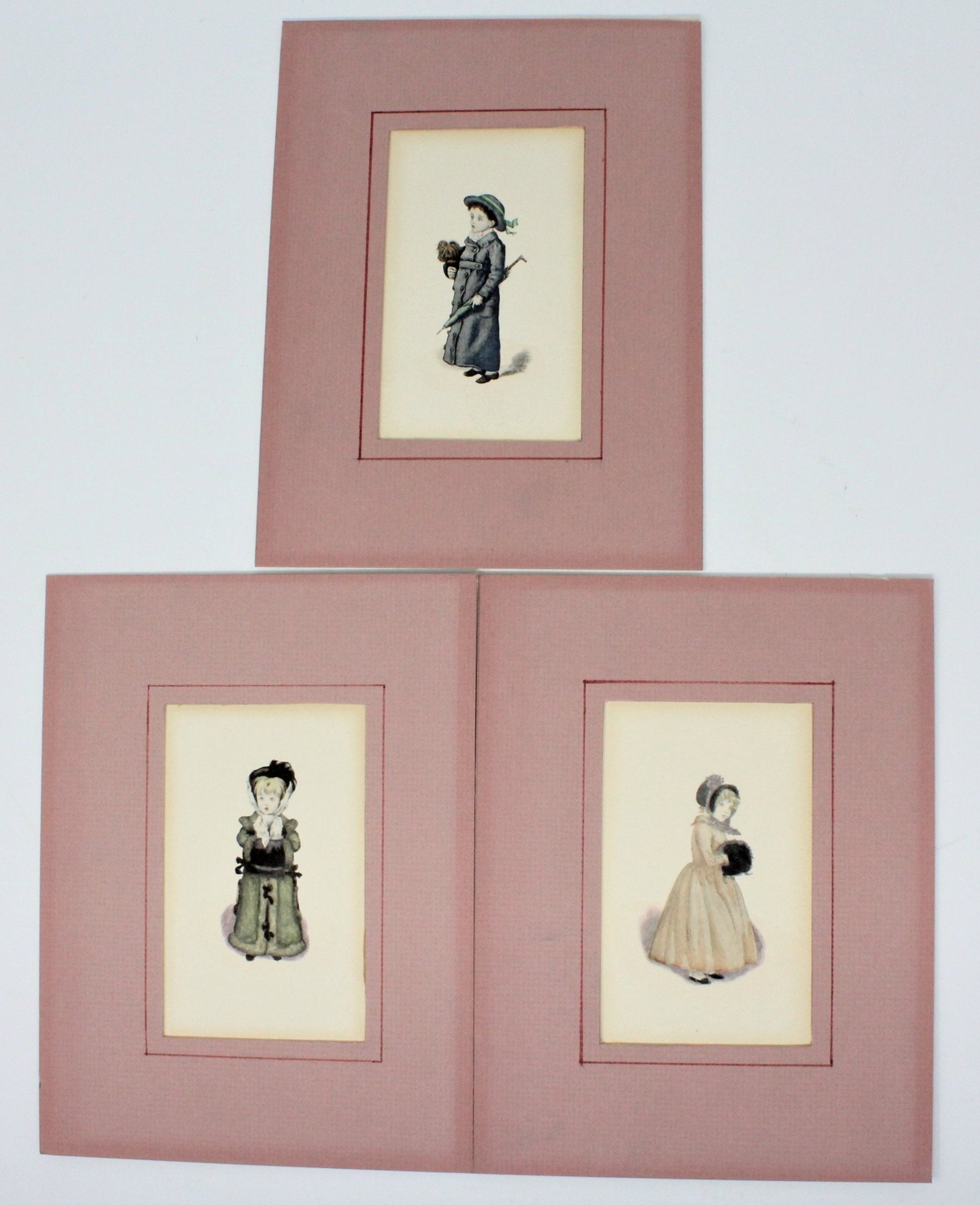 Prints, Watercolor, Victorian Children, Matted, Set of 3
