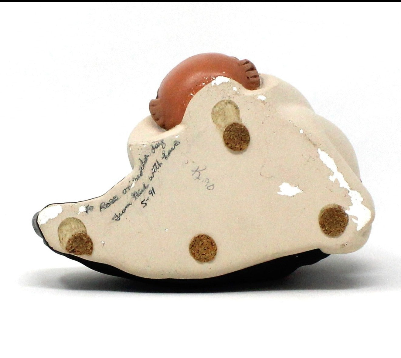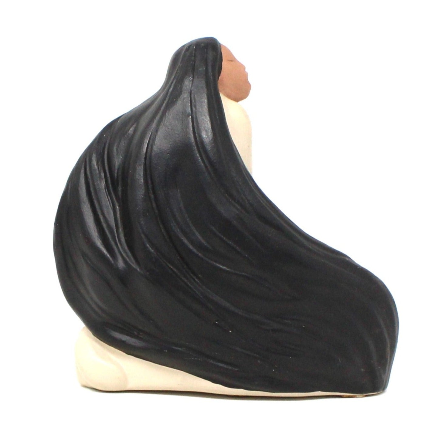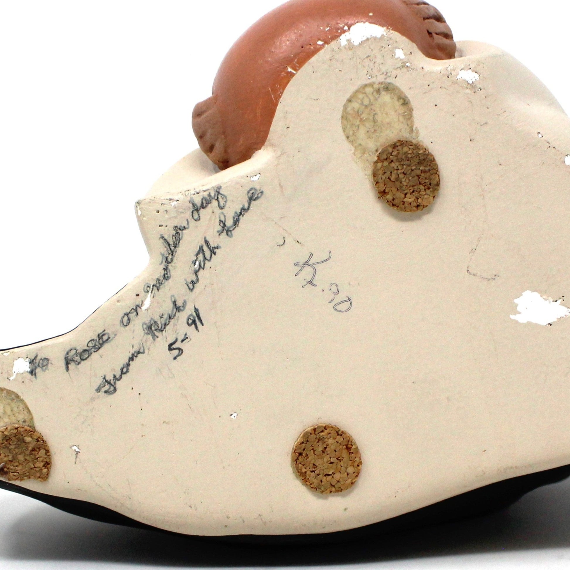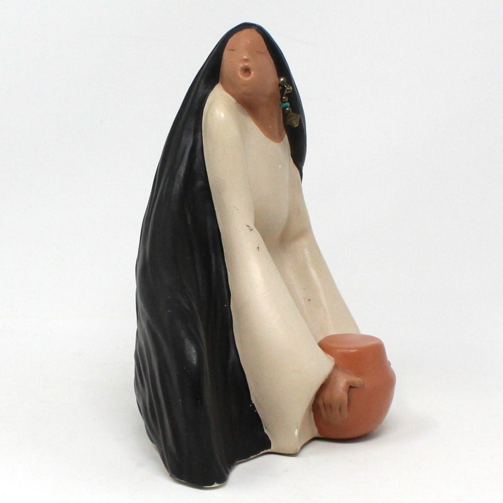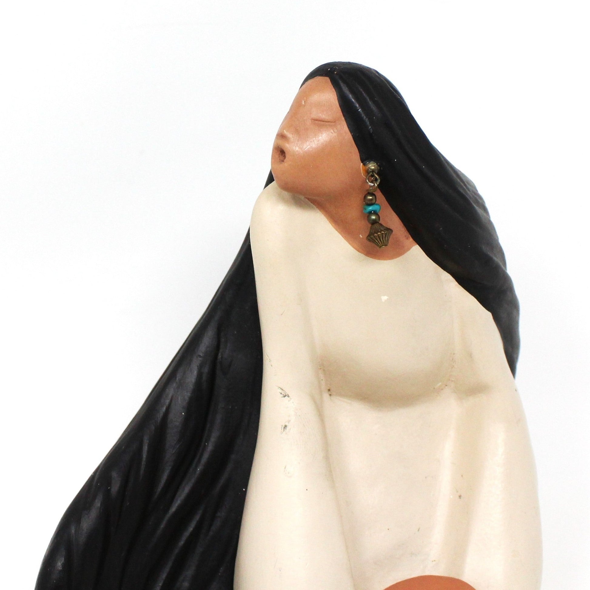 - Pattern: Sculpture, Native American Woman Holding Bowl, Beaded Earring, Hand Cast Molding, Hand Painted, Initialed & Dated