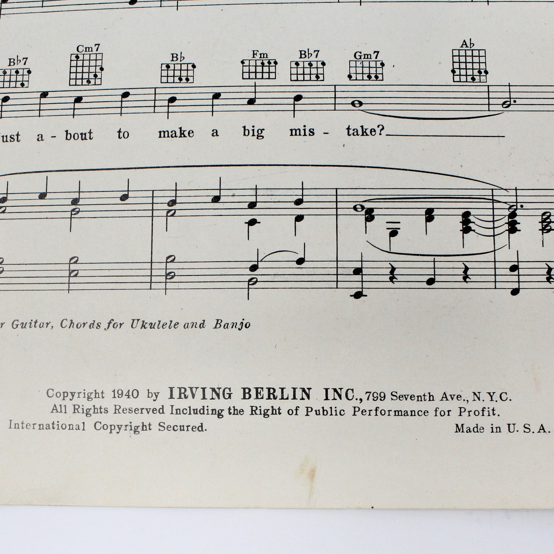 Sheet Music, Irving Berlin, Inc, Walt Disney's Pinocchio, Give a Little Whistle, Vintage 1940