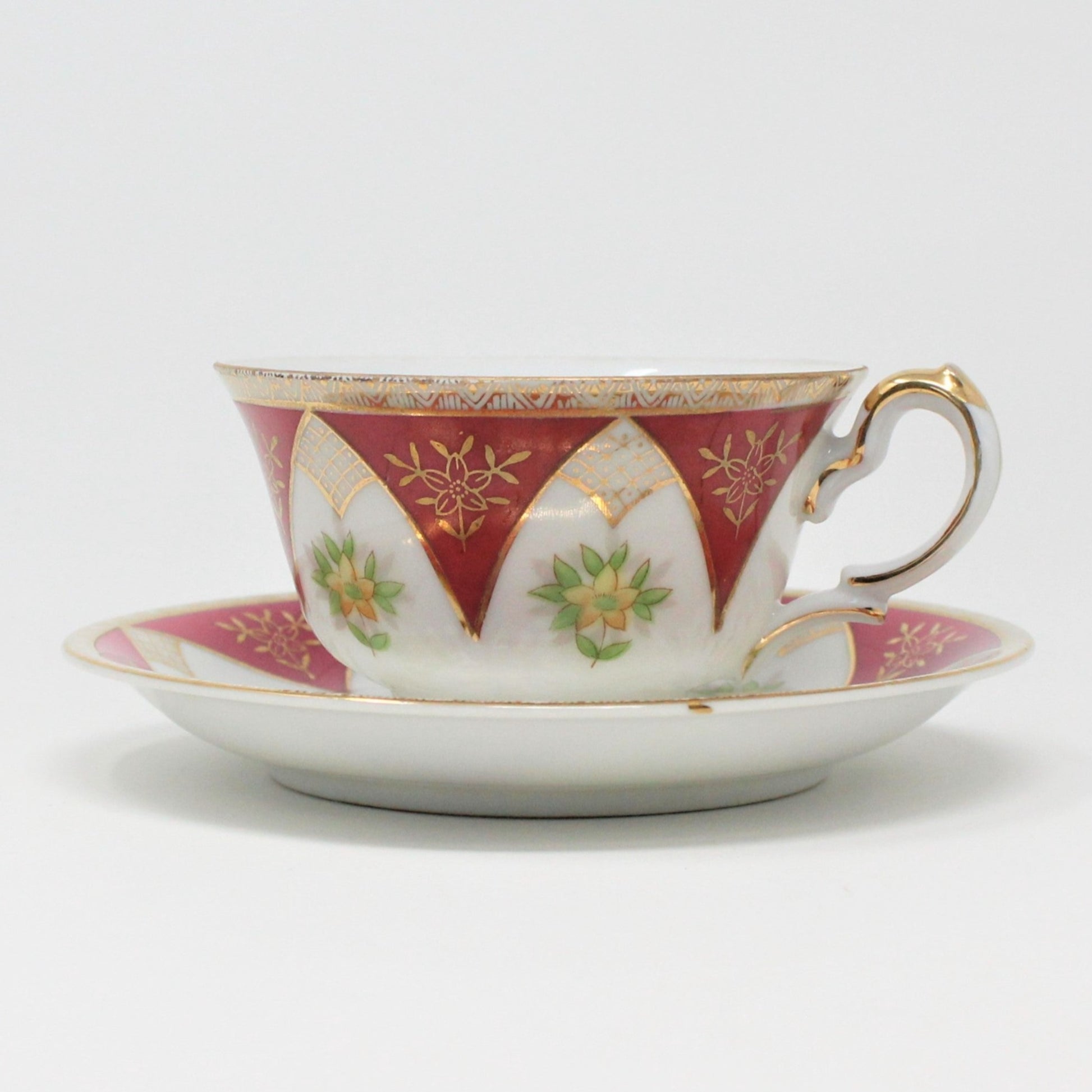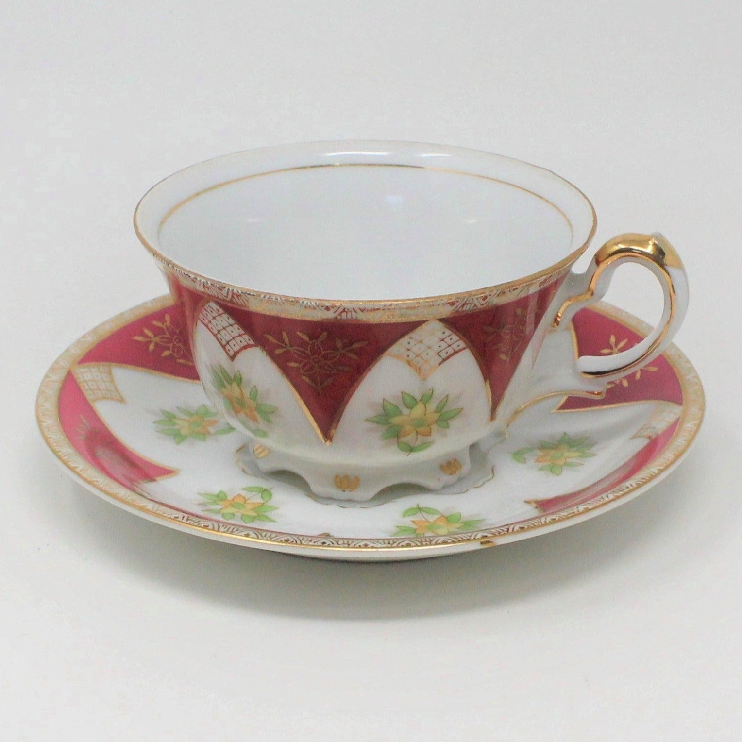 - Vintage Tea Cup and Saucer, Yellow Florals & Red Arches, HB Mark Drinkware, Teacup Collectors, Pretty Teacups, Tea Lovers, Tea Wares, Tea Party, Mid Century Japan Imports, (Discontinued)