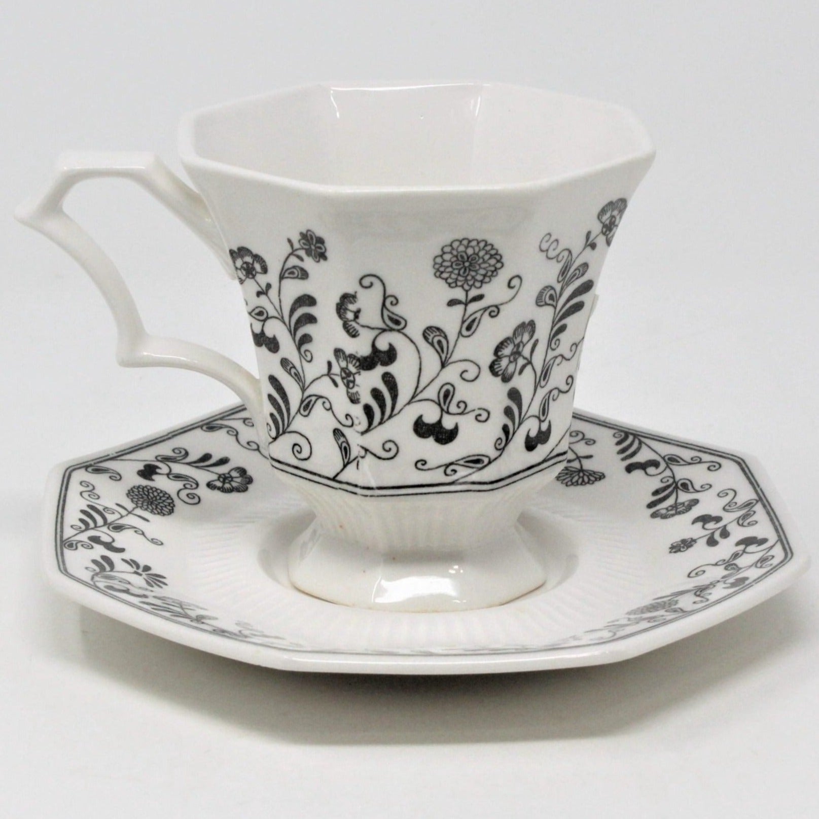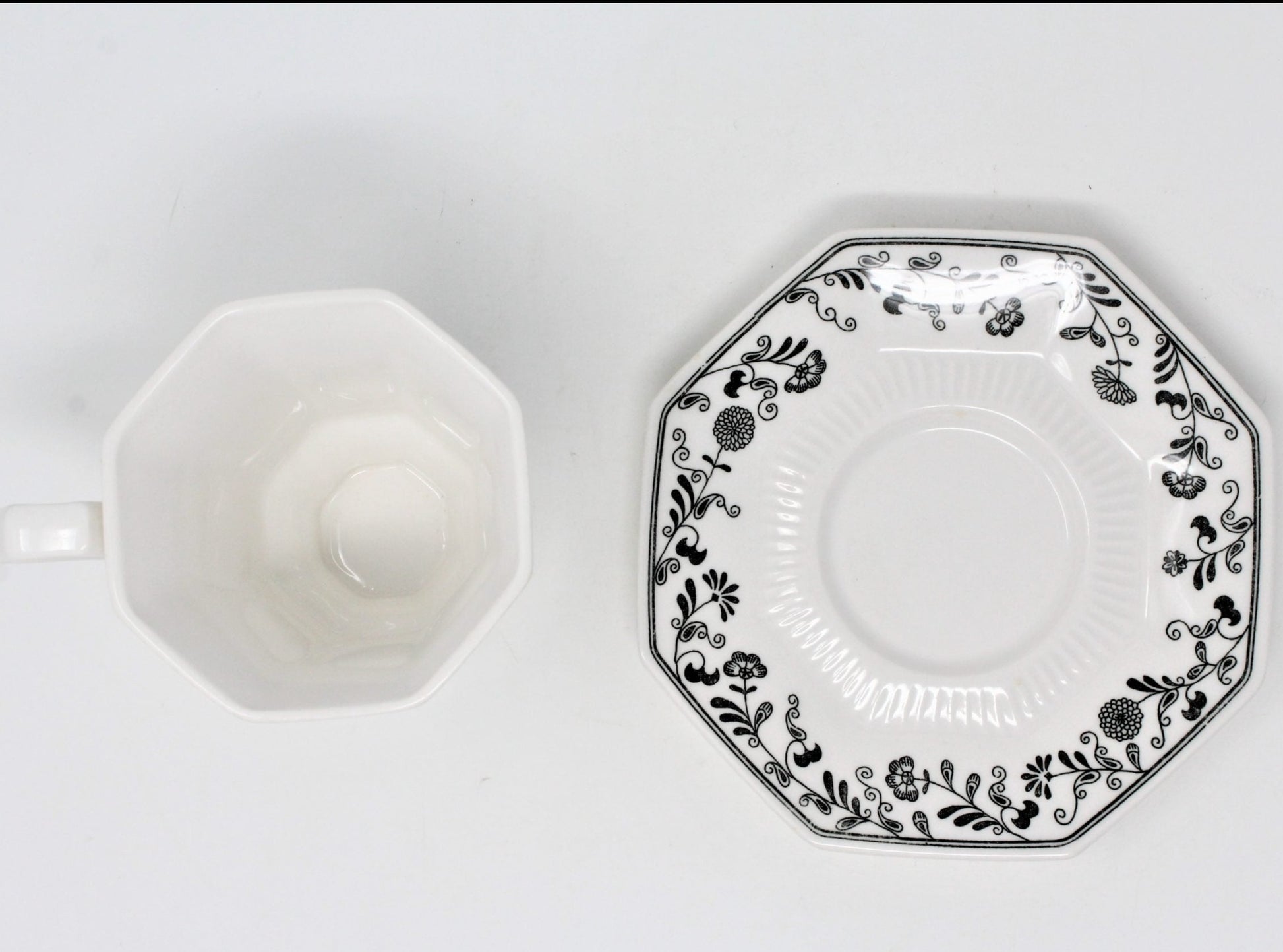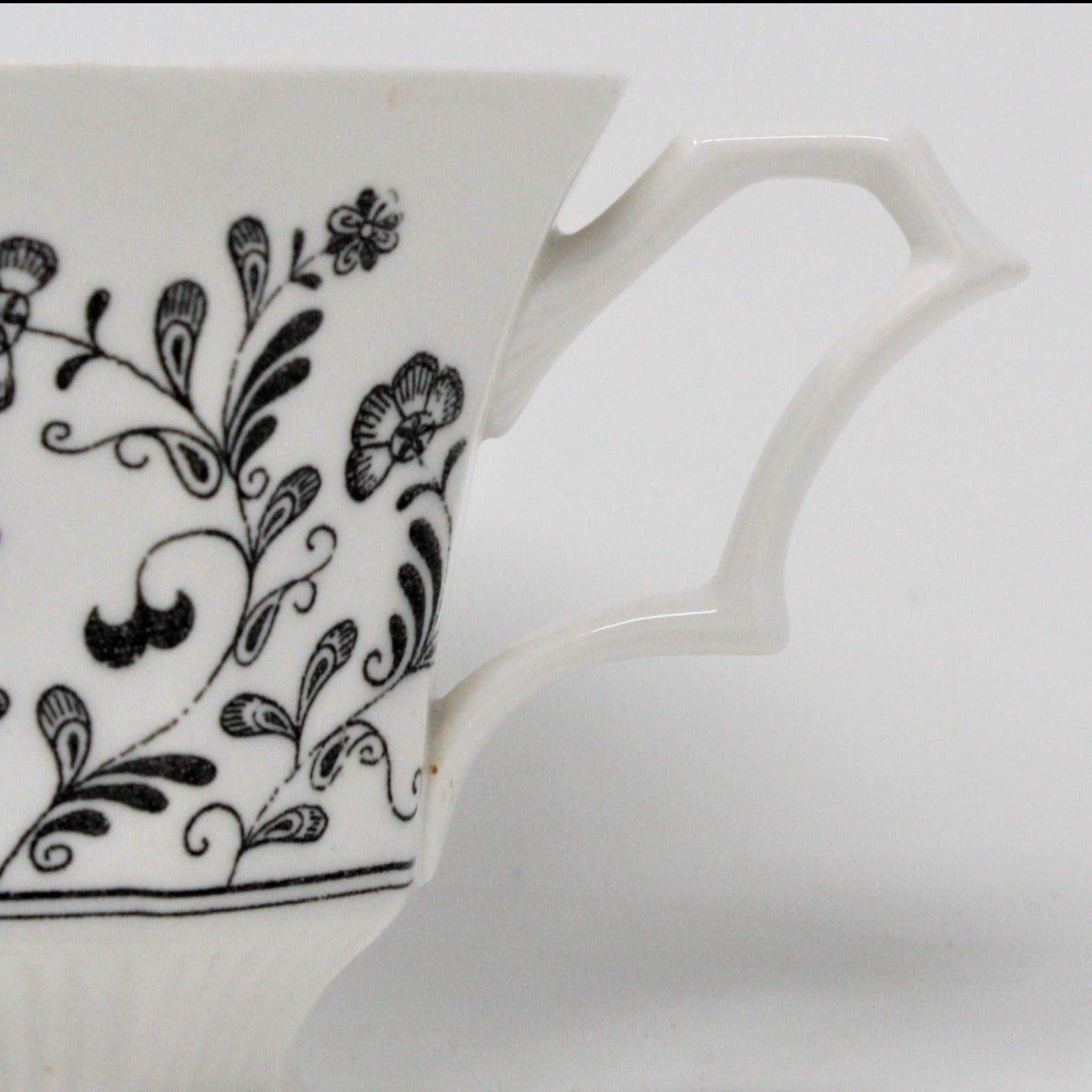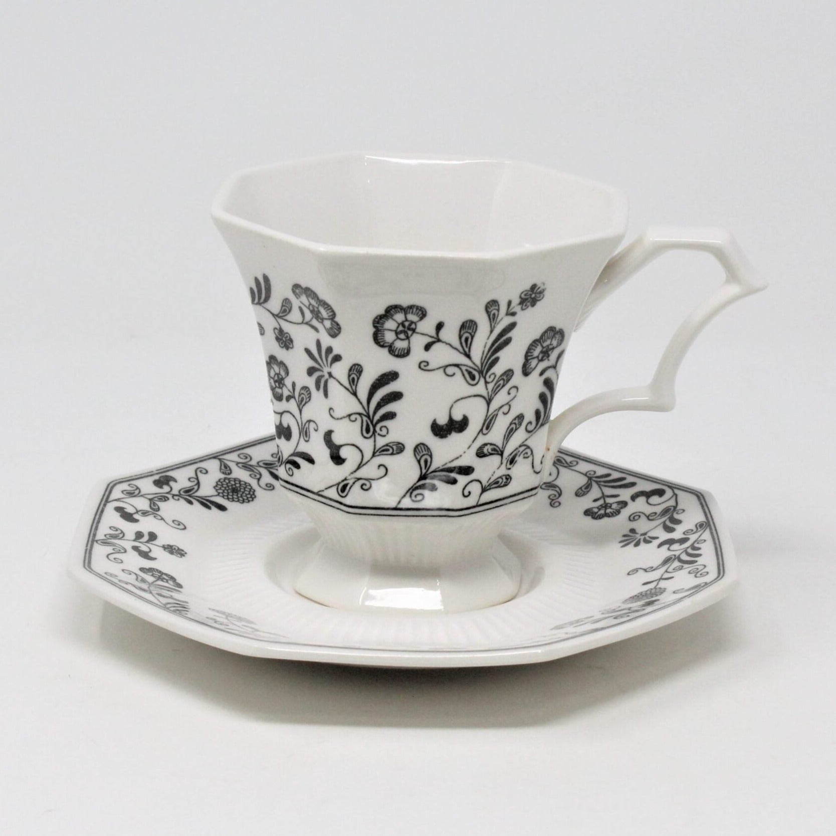 - Pattern: Vintage Tea Cup and Saucer, Independence Ironstone, Millbrook Pattern, Black & White Florals (Discontinued)