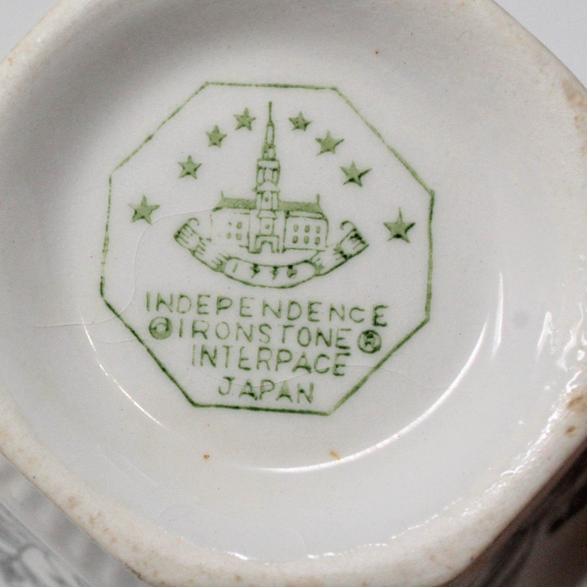 - Details: A really beautiful cup and saucer set in the Millbrook pattern by Independence. All the pieces in this pattern have an octagonal shape. The pattern is a floral abstract, almost has an Oriental vibe. The pattern repeats all around the cup and on the saucer it's around the border. The verge is not smooth, it has an embossed design. These are part of an entire dinnerware set from Independence. Both pieces have a backstamp: "Independence Ironstone INTERPACE, Japan". If this is your pattern, we hope this will be a great addition to your collection. Otherwise, if you're just looking for a very pretty teacup, this one will not disappoint. Great gift for a teacup collector!