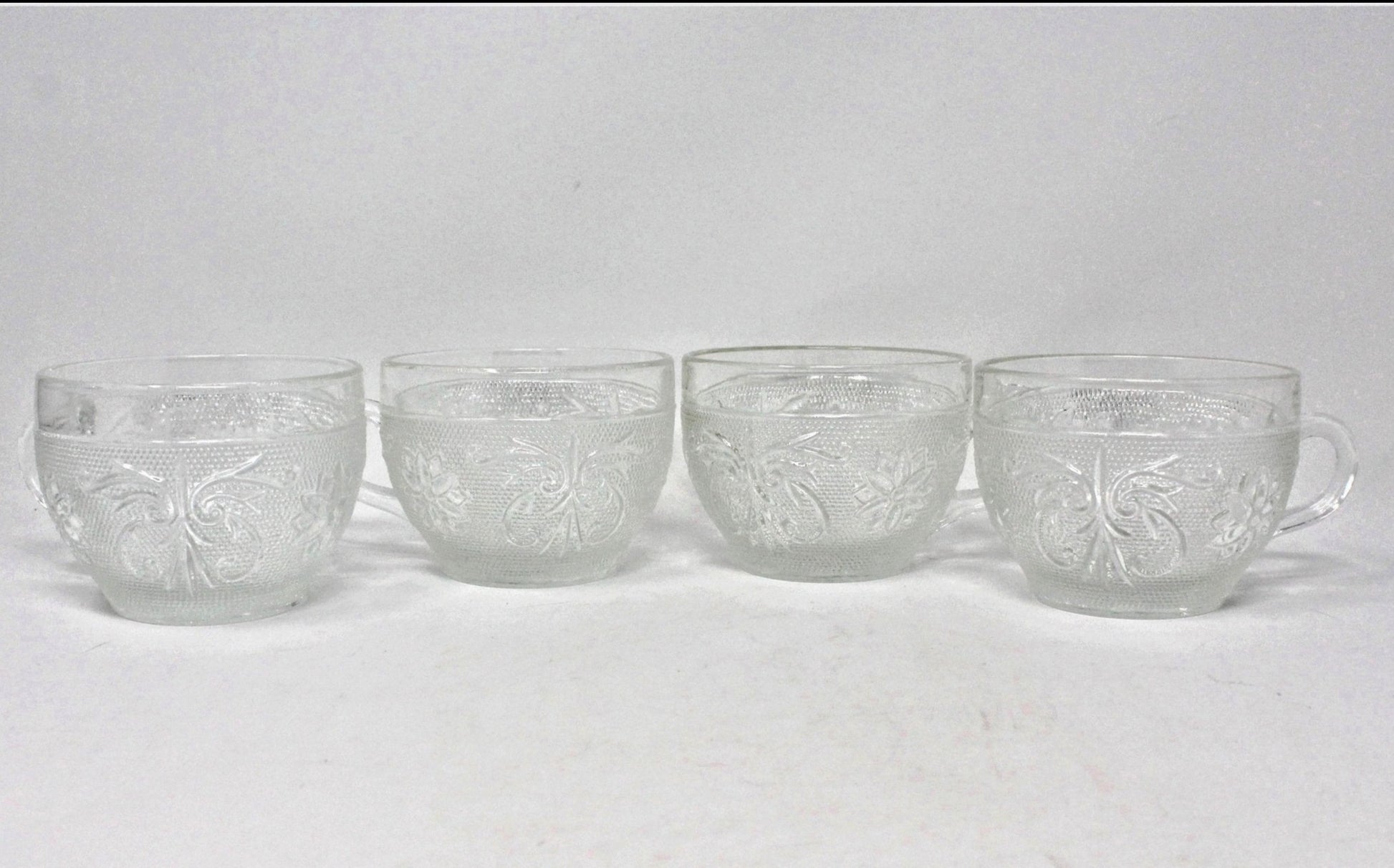 Coffee Cup, Indiana Glass / Tiara, Sandwich Clear Set of 4, Vintage