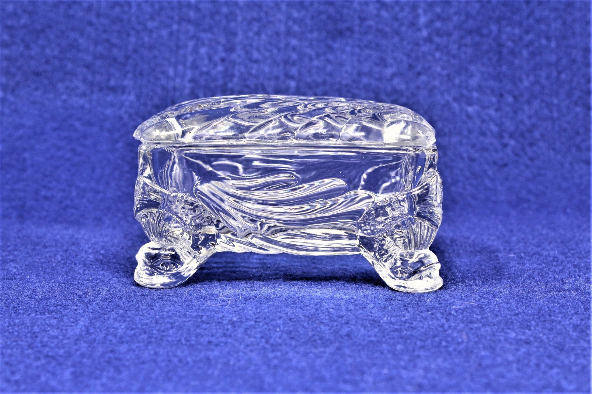 - Vintage Cigarette Box, Trinket Box, Caprice Pattern, Dolphin Footed, Glass Storage Box, Embossed Shell, Dolphin Feet, Vintage Collectibles, Cambridge Glass Co, (Discontinued)
