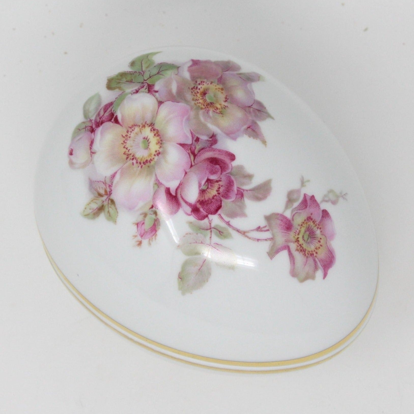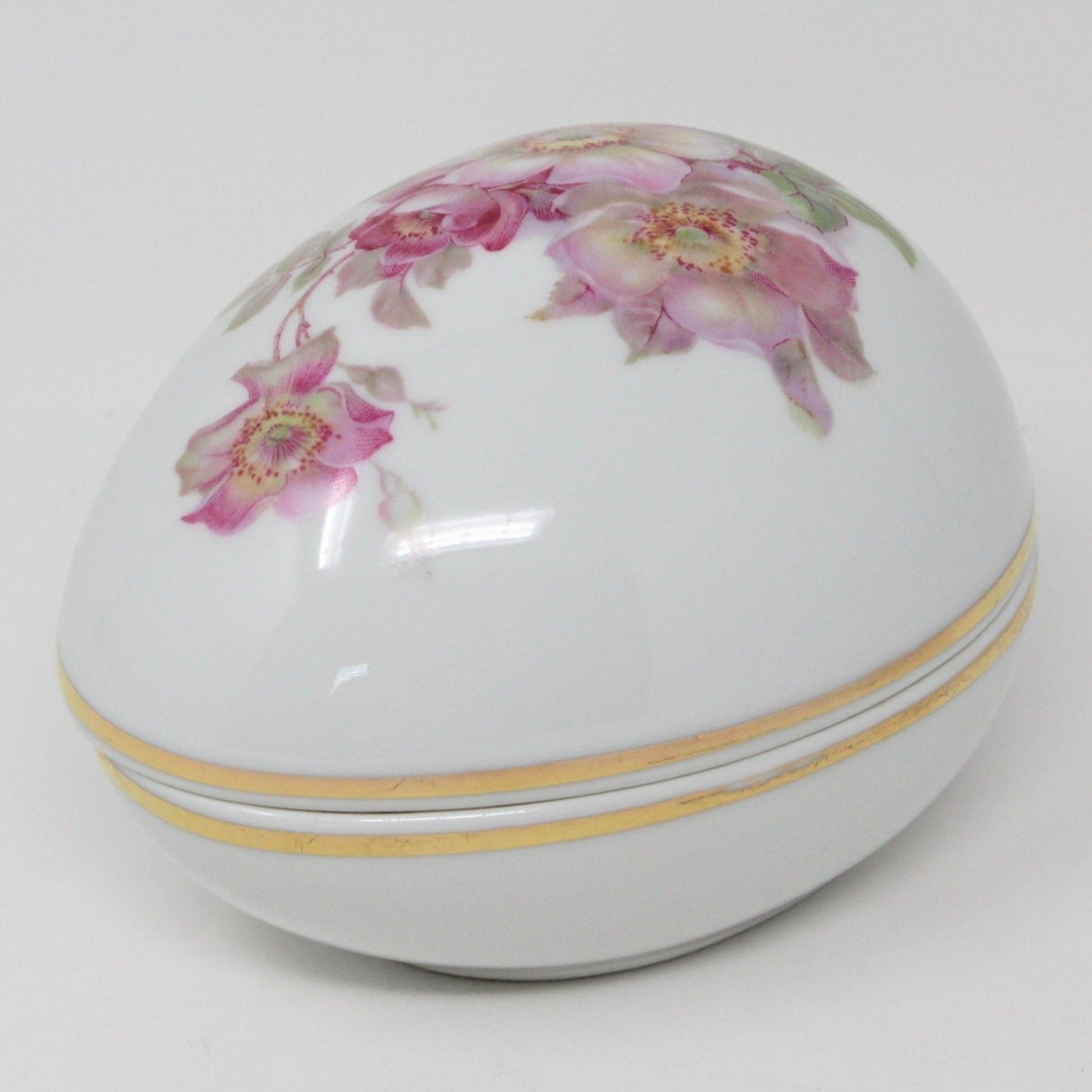 - Vintage Trinket Box, German Porcelain Egg Shaped, Pink Florals, Wild Roses, CWQ3, Storage Box, Vintage Decor, Easter Home Decor, Gerold Porzellan, Romantic, Easter Egg, (Discontinued)