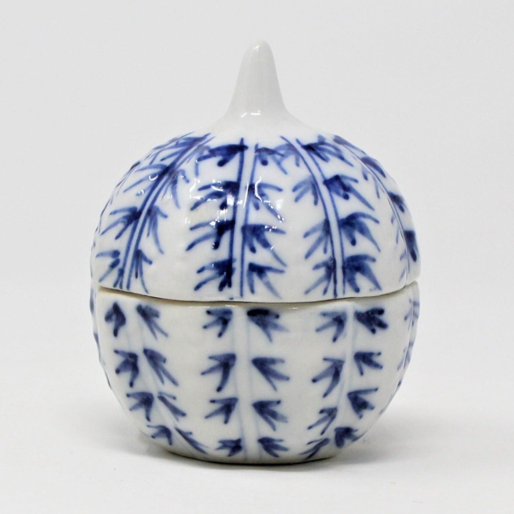- Vintage Trinket Box, Pumpkin Shaped, Blue & White Porcelain Pumpkin, Mini Decorative Pumpkin, Ring Box, Jewelry Storage, Fall Decor, Oriental Decor, Asian Style, (Discontinued)