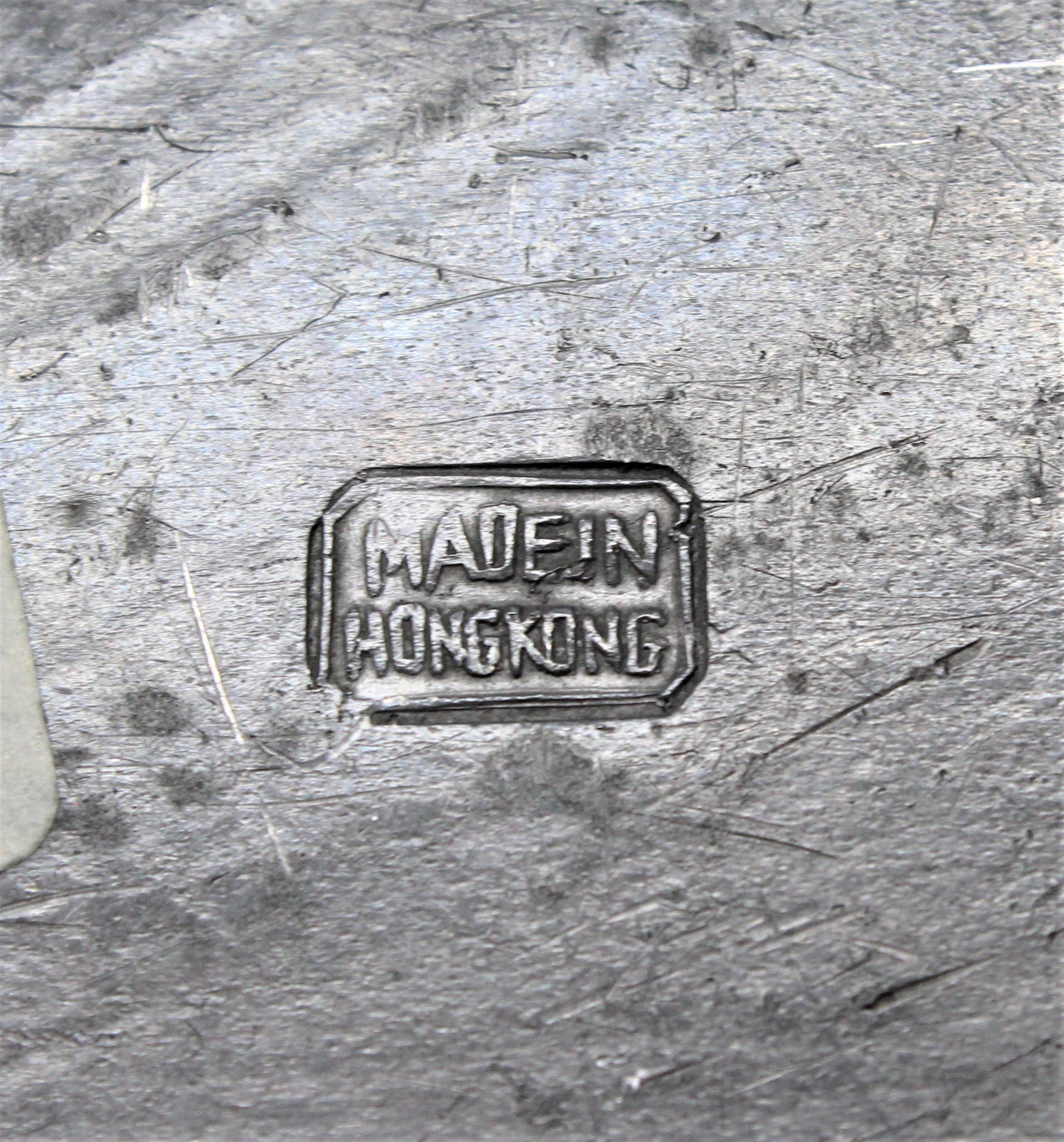 - Details: Very beautiful Oriental/Asian artisan decorated pewter trinket box. It is shaped like a duck, (we think it looks more like a Loon, with it's long thin beak, not wide like a duck's). It has brass accents on the wings, tail and eye. It opens up to a shallow bowl where you can hide all sorts of small items like jewelry, office supplies, perhaps stamps or paper clips, maybe even an extra key. It is embossed on the bottom: "Made in Hong Kong". Pictures show the original price from 40 years ago was $39.00, that's the equivalent of over $110 dollars in today's value. Unique home decor, would be a great addition on a desk or bookshelf, or as a gift for an Asian decor collector.