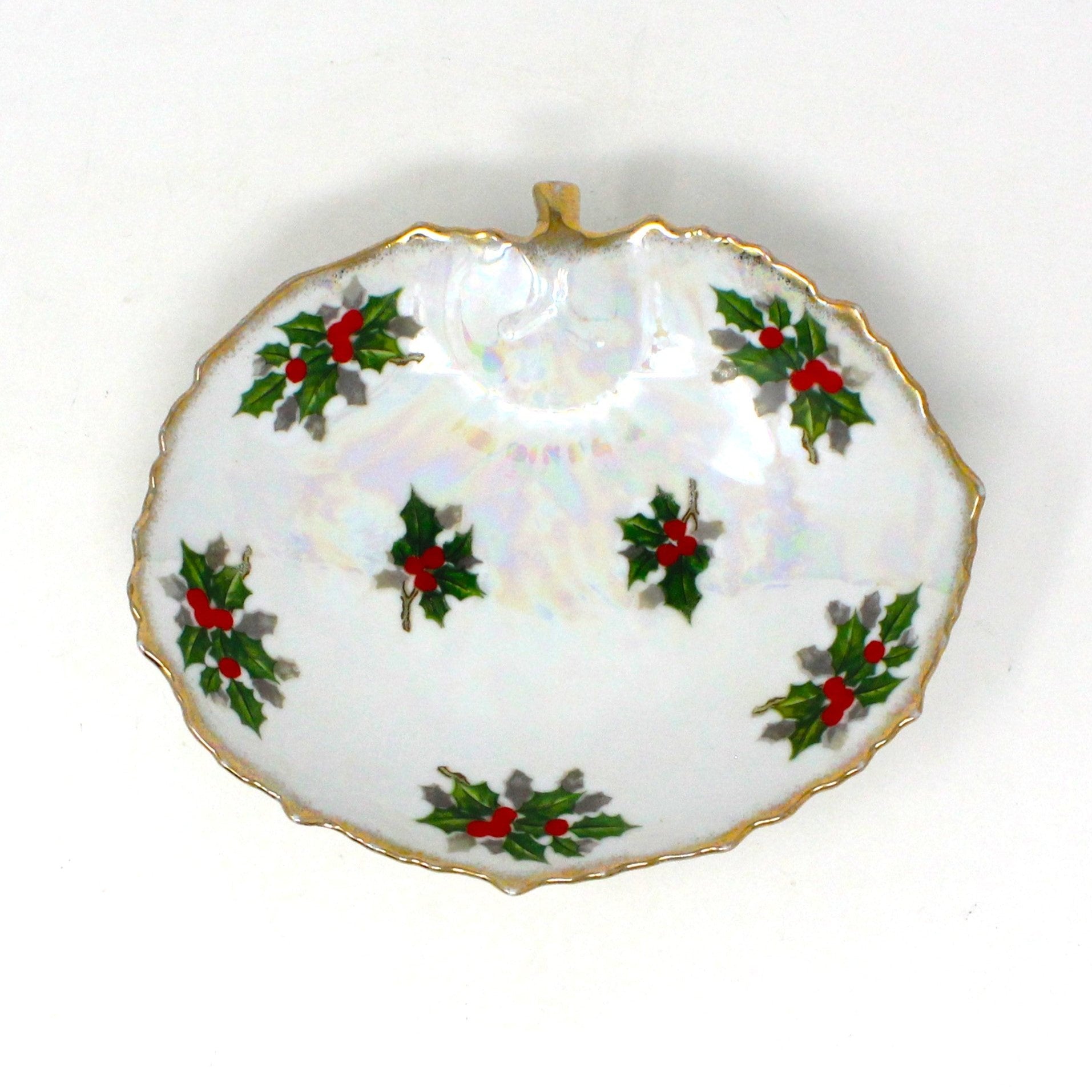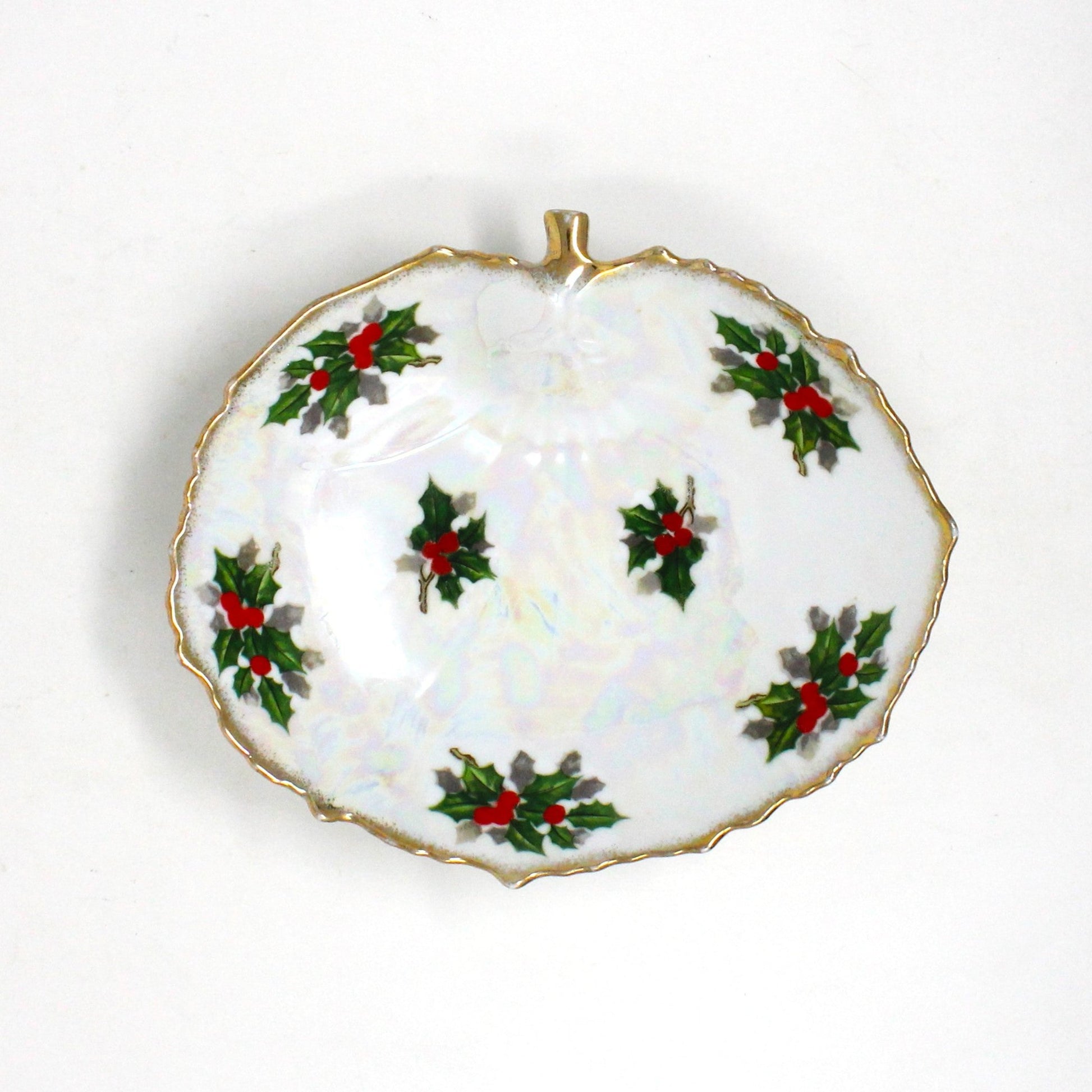 - Vintage Trinket Dish, Candy Dish, Iridescent Christmas Holly & Berry, Leaf Shaped, December Flower of the Month Collection, Jewelry Dish, Bon Bon Dish, Holiday Decor, Mid Century, (Discontinued)