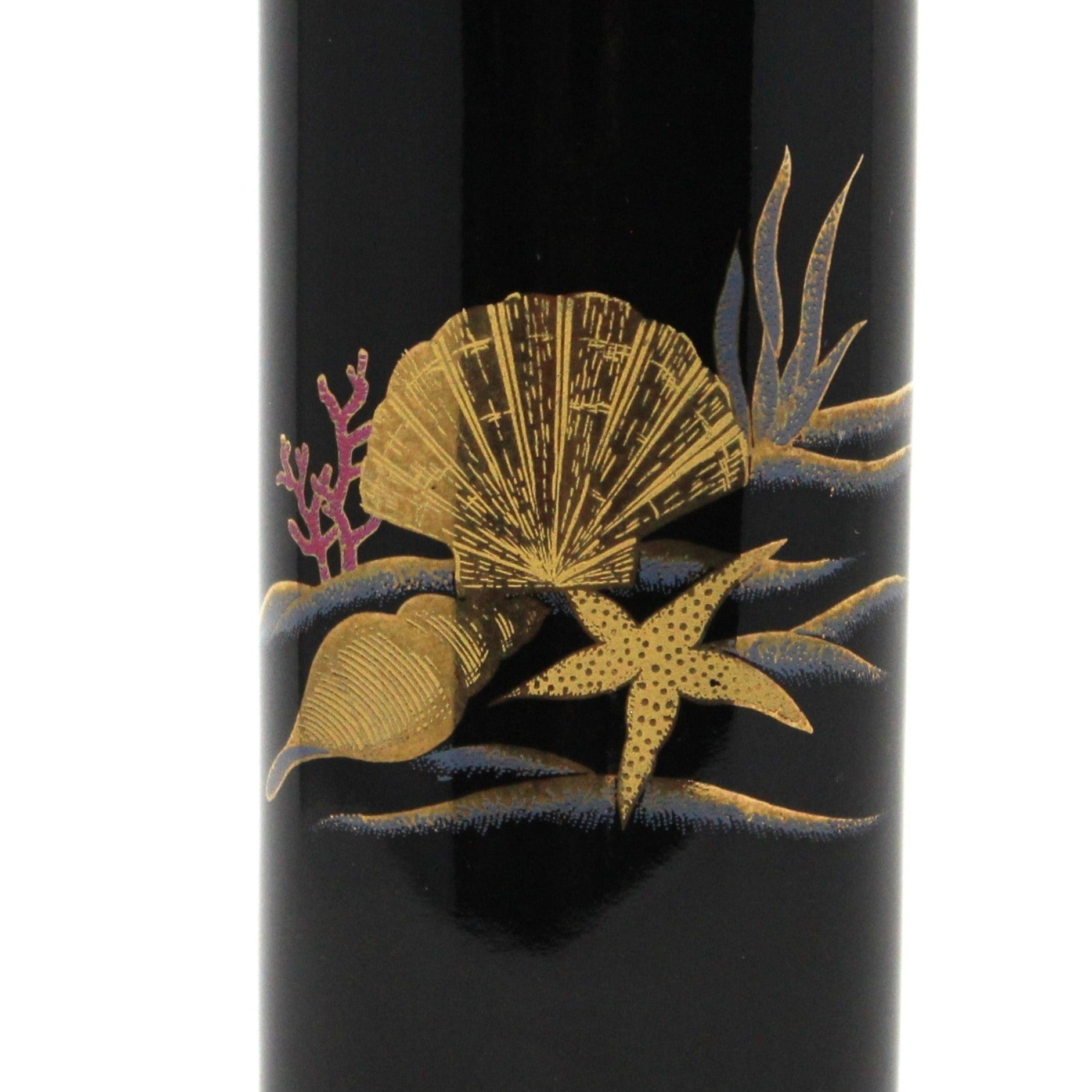 - Vintage Vase, Otagiri Vase, Black Porcelain, Gold Sea Shells & Pink Corals, Cylinder Shape Vase, Home Decor, Japan Porcelain, Ceramique Noire, Chinoiserie, Asian Nautical Decor, Elegant Coastal Decor, (Discontinued)