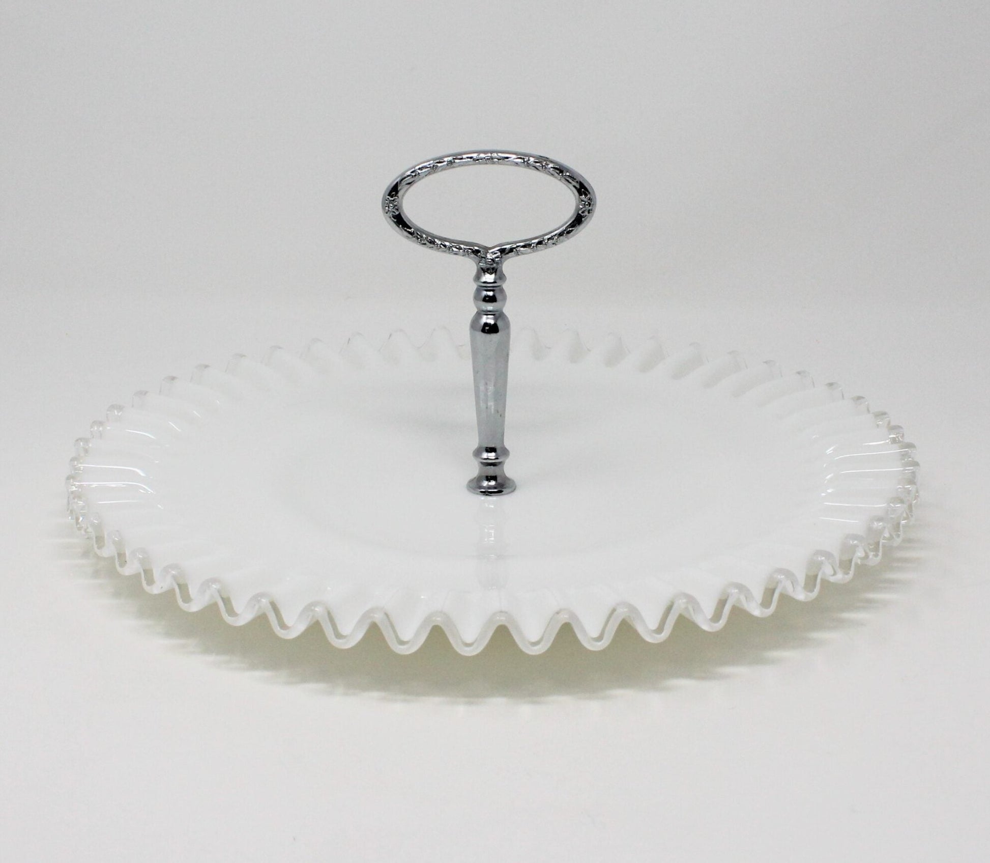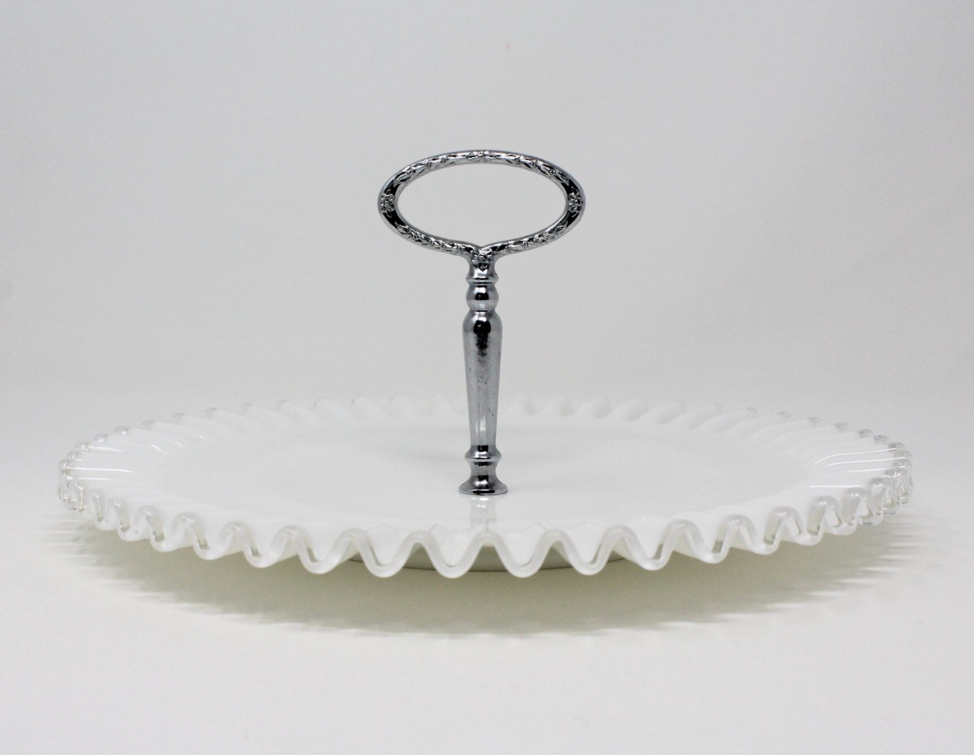 - Vintage Fenton Sandwich Tray, Serving Plate w/Handle, Silver Crest 7291, Milk Glass, Tidbit Tray, Serveware, Hostess, Weddings / Bridal Showers, Vintage Collectibles, (Discontinued)