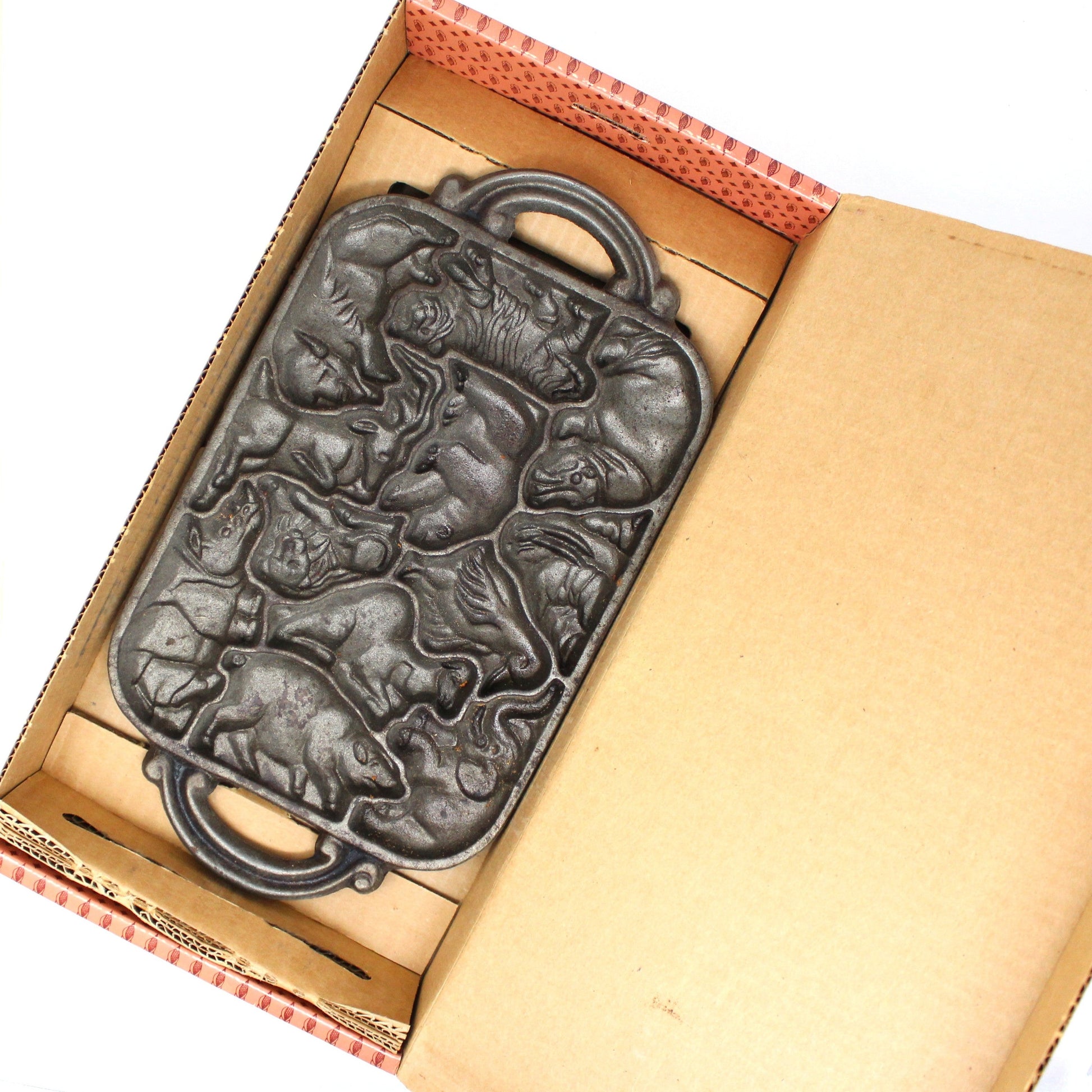 - Vintage Cast Iron Baking Pan, Wild Animals Shaped Cookie / Muffin / Shortbread Puzzle Mold, John Wright Classic Gourmet Brand, Original Box, Bakeware, Baking Mold, Fun Shapes Mold, Animal Puzzle, (Discontinued)