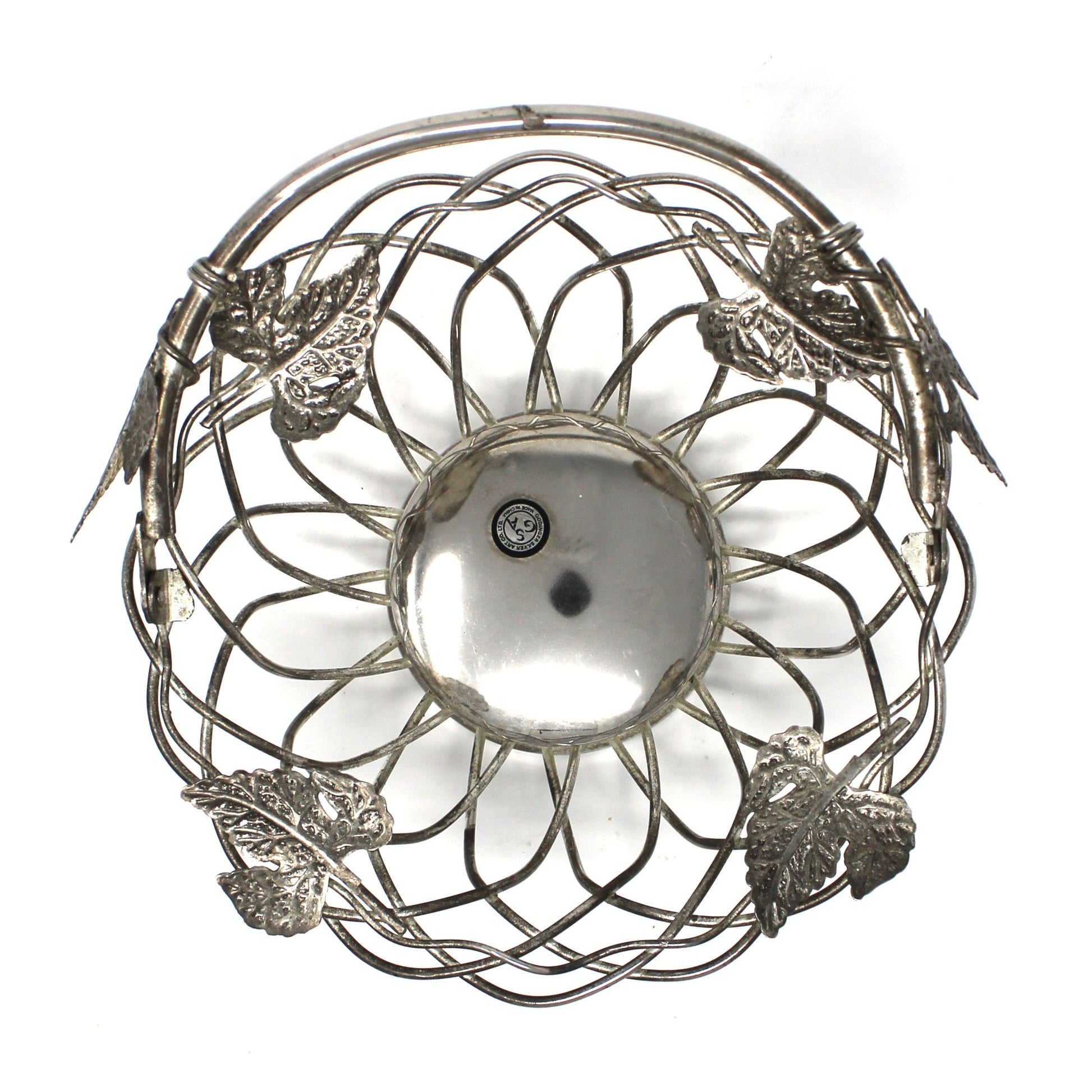 - Details: This is a very elegant pierced / wire basket from Godinger Silver. The pattern has several hammered maple leaves (could be grape leaves), with a pretty movable handle. Useful as a bread/rolls server, to hold fruits or lovely on its own as decor. It retains its original sticker that reads: "GSA Godinger Silver Art Co LTD, Made in China." It's also stamped on the bottom, "Godinger". It has a nice weight to it, heavy for its size. Its vintage charm and refined metalwork bring timeless elegance to any room, while the durable silverplate finish ensures lasting beauty. A sophisticated accent piece for collectors and design enthusiasts alike.