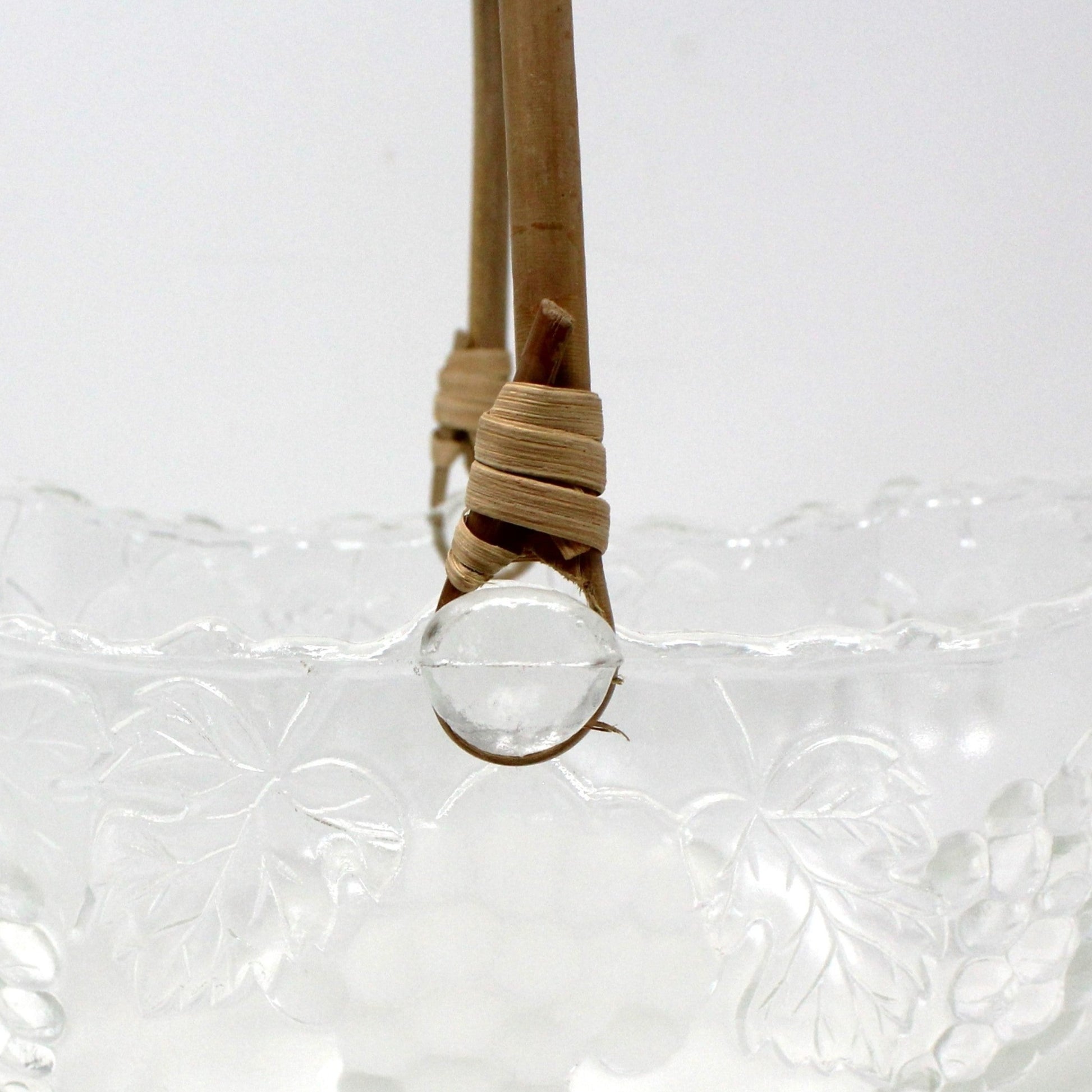 - Vintage Glass Basket with Bamboo Handle, Embossed Frosted Grapes, Vintage Italian Glass, Home Decor, Wine Related Gifts, Decorative Storage, Elegant Decor, Fruit Basket, Italian Glass, (Discontinued)