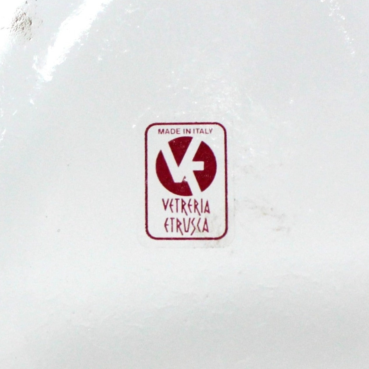 Vetreria Etrusca was started in 1920 in Italy, originally making jars and bottles for the wine and olive oil producers. Starting in the 1960's they expanded further to include containers that once used for their specific purpose, could then continue to be used as decor, candle holders, or other houseware items. We believe that this basket may have been sold to the floral industry, for flower arrangements. This company is still in business, still innovating beautiful and useful glass containers in new and creative ways, however, this basket is no longer being made.