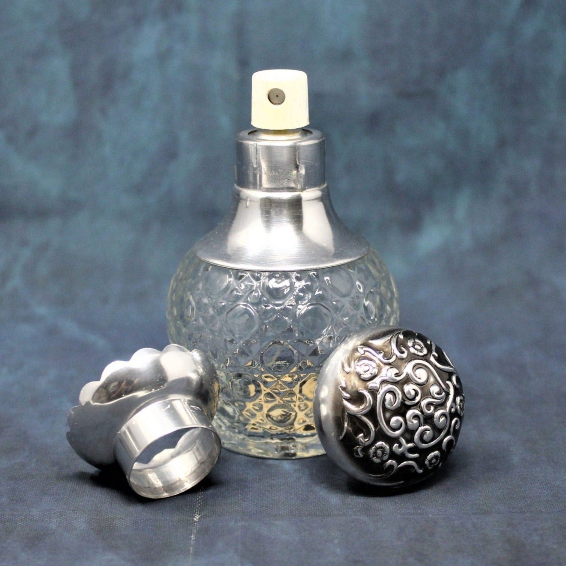 - Vintage Perfume Bottle, Embossed Glass w/Silver Lid, Avon Hana Gasa Spray Bottle EMPTY, Avon Collectible, Women's Parfum Perfume Collectible, Avon Collectibles, Vanity Decor, (Discontinued)