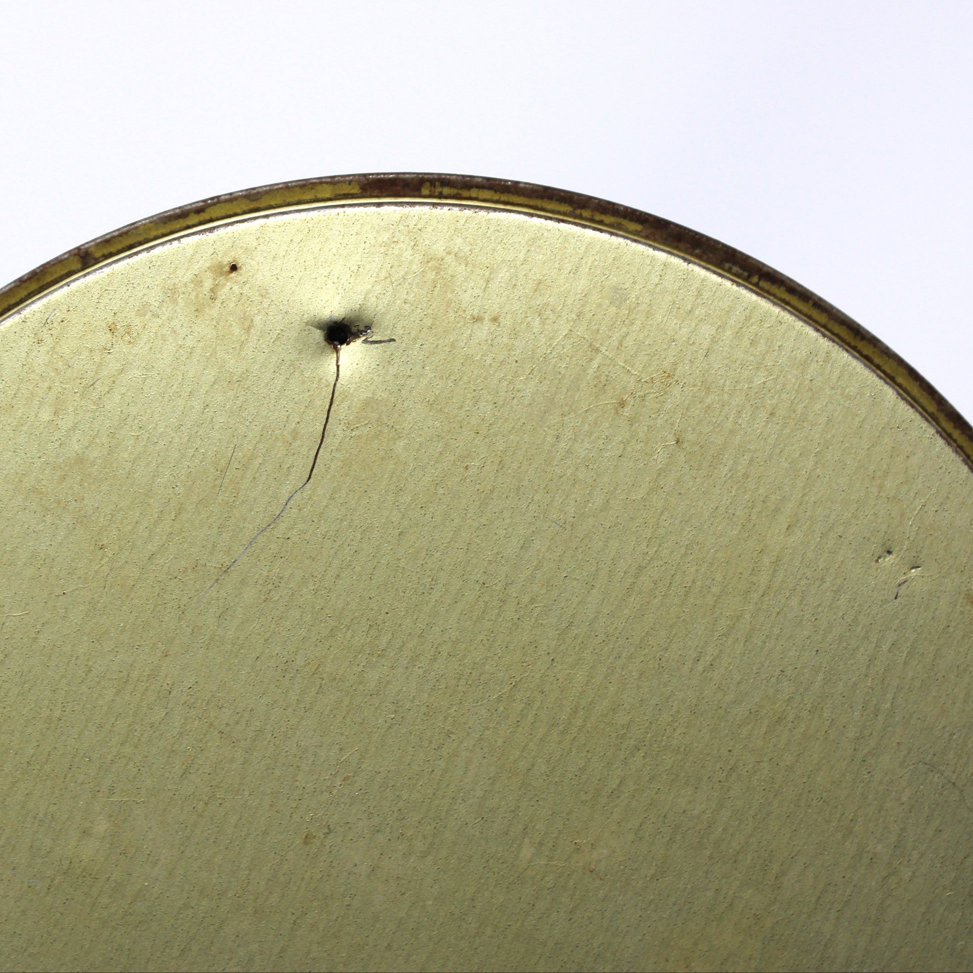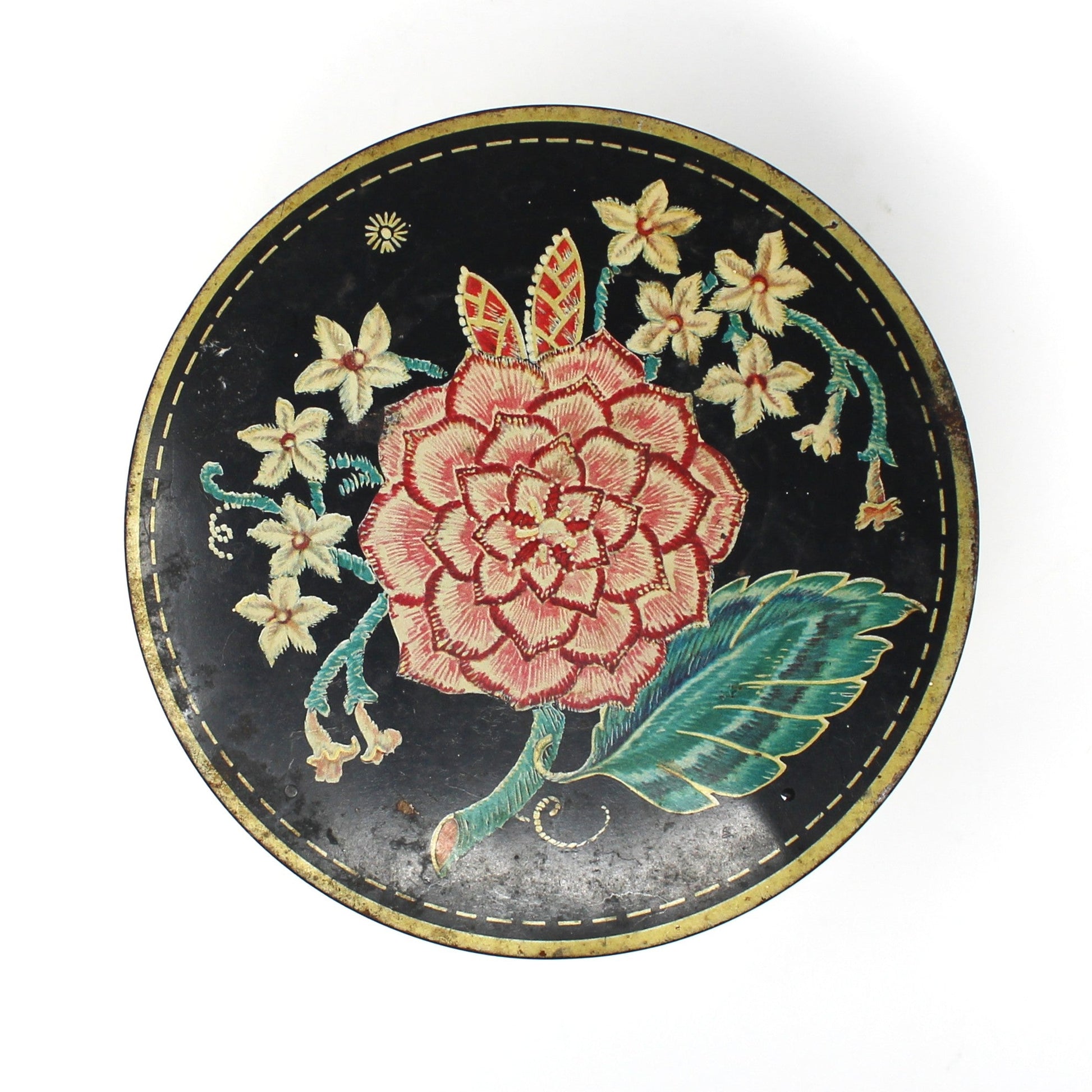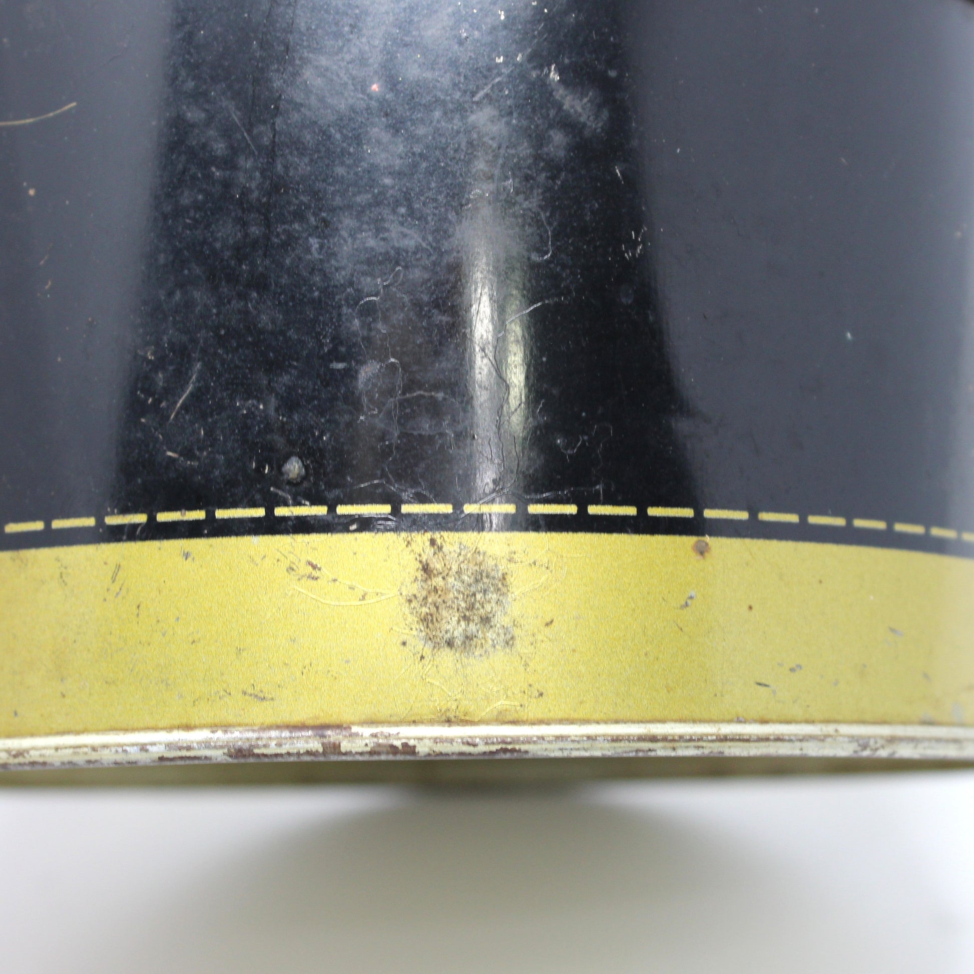 - Condition: Vintage - Used. Good Vintage Condition. There several minor scratches, rust, marks and other signs of age and wear as acceptable. Some marks on the lid are only visible when the light hits it just so, we've attempted to photograph them for you. There is a hole on the underside of the lid. This tin is empty. Please review all pictures and make sure you love this item before purchasing, we can't accept returns. Please remember these are VINTAGE and ANTIQUE items, they are NOT new, every effort has been made to show any scratches, wear and imperfections.