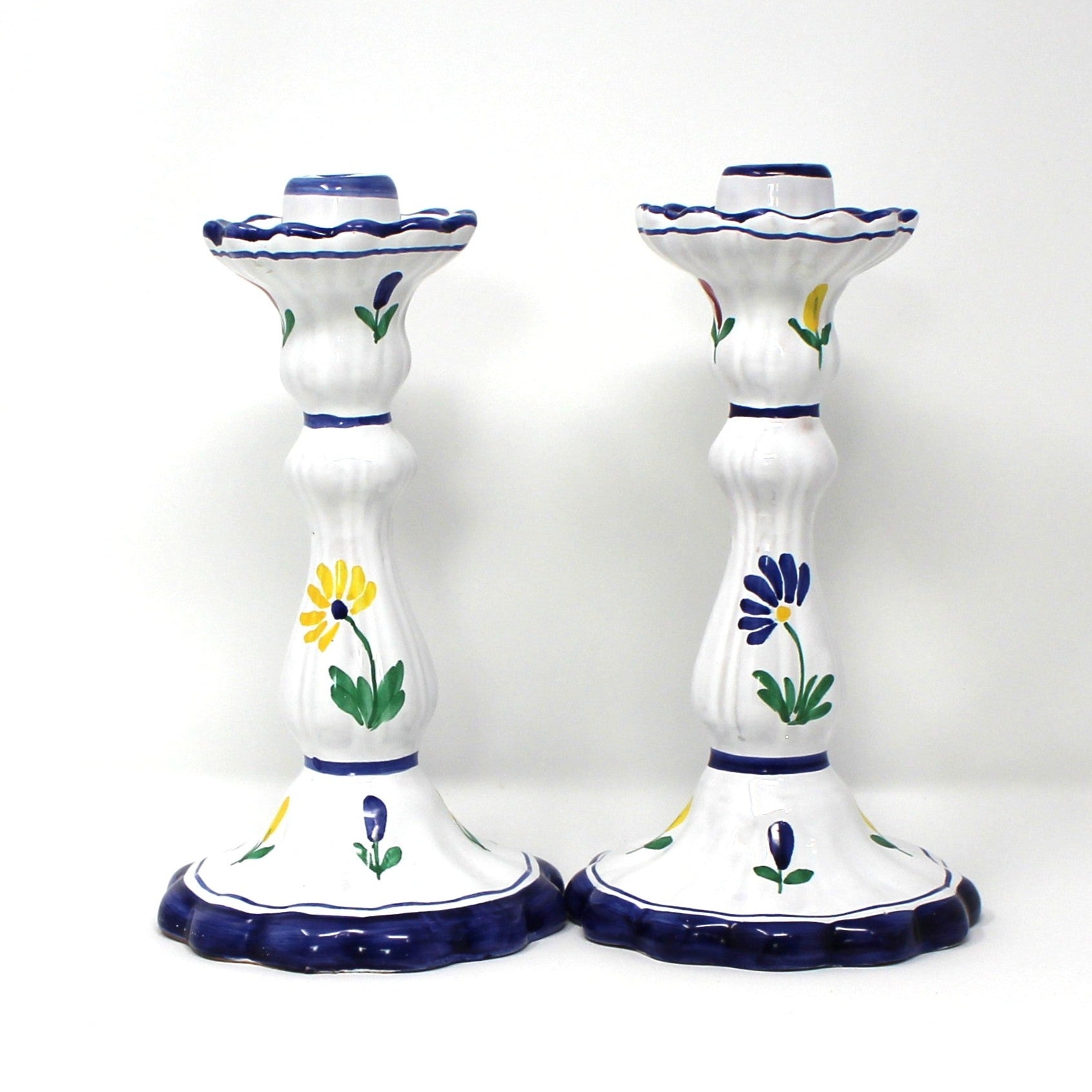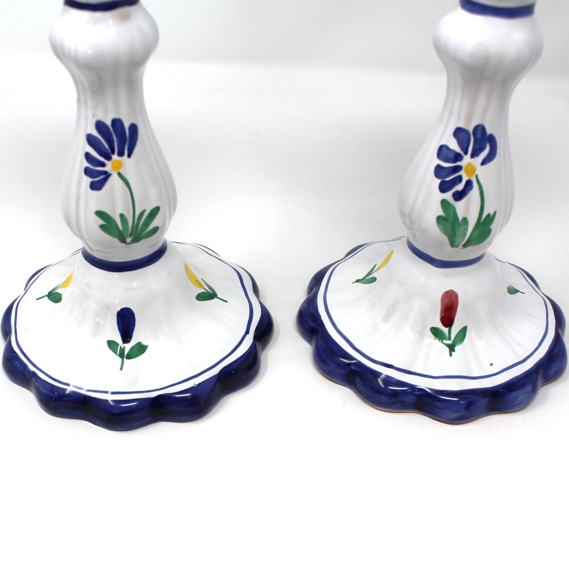 - Vintage Candle Holders, Italian Ceramic, Hand Painted Blue & White Florals, Set of 2, Strata Group, Made in Italy, Flowers, Spring & Summer Decor, Gift Ideas, Pottery Collectors, (Discontinued)