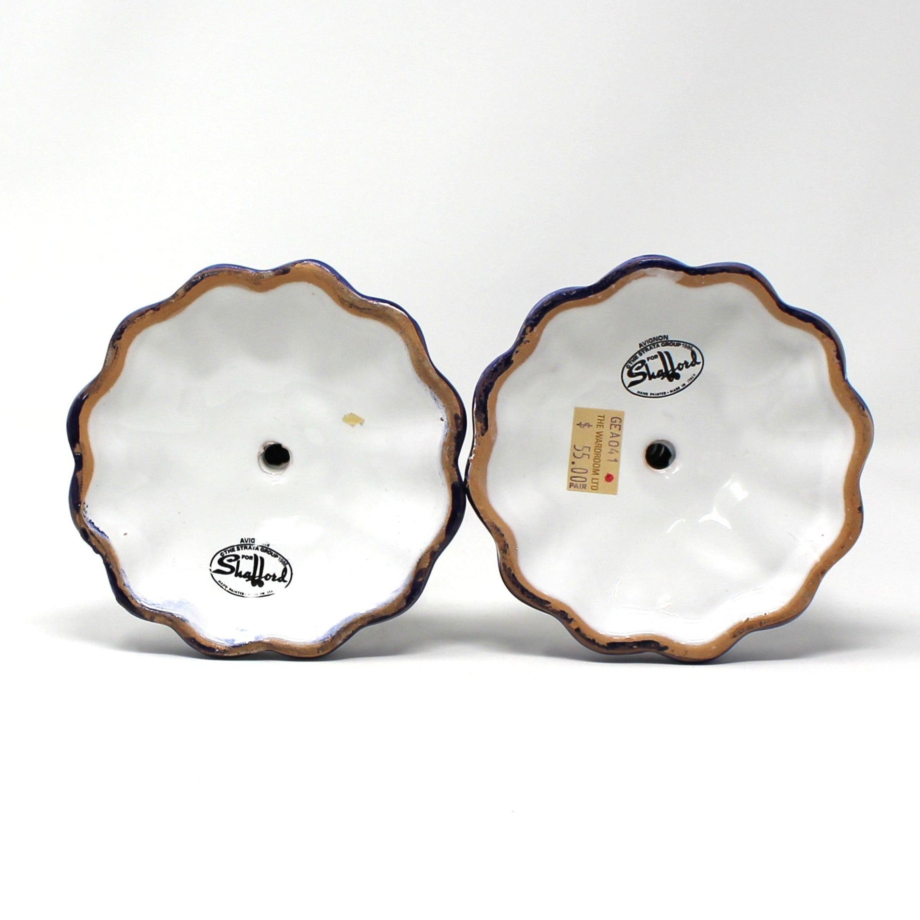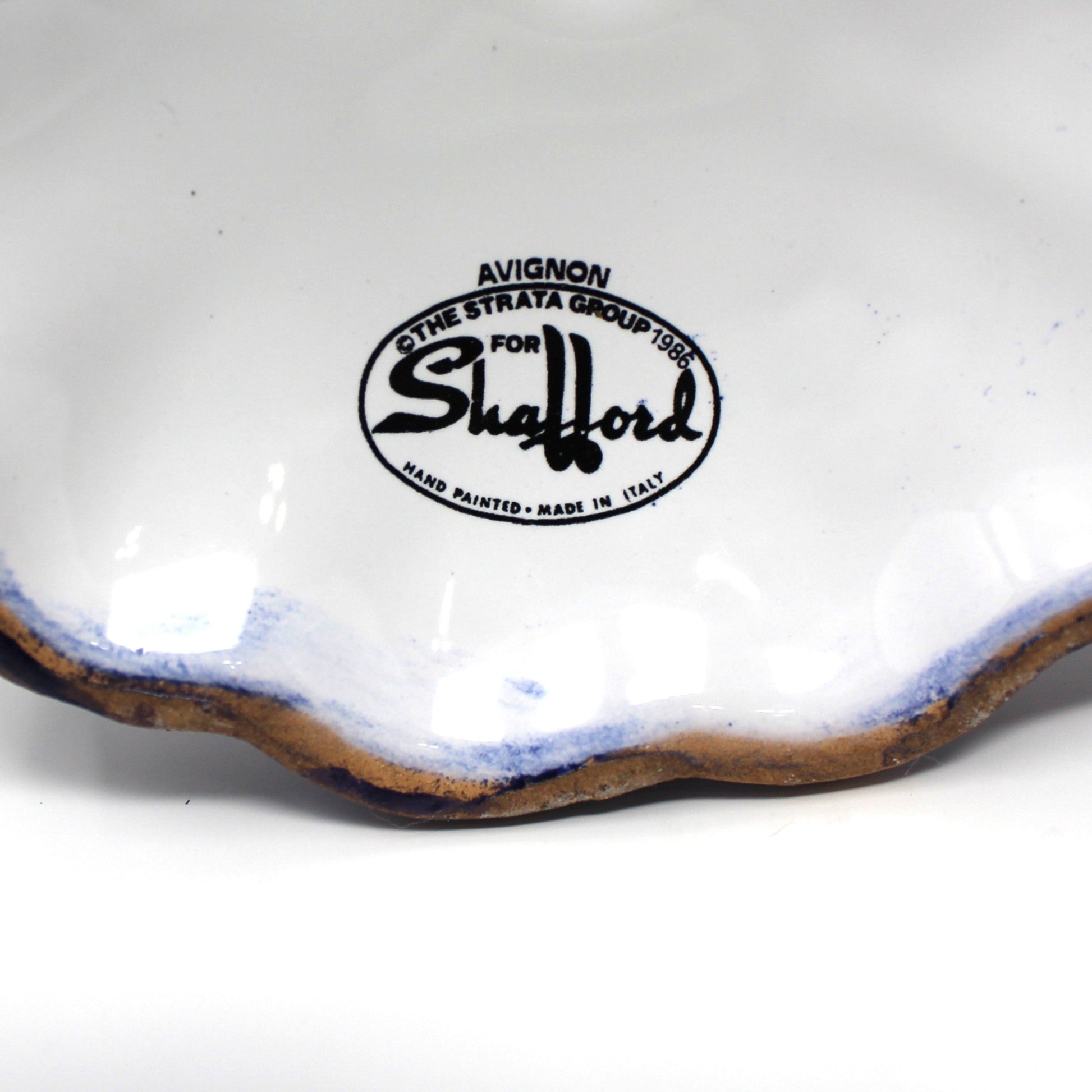 - Details: A pair of bright and colorful, hand painted candle sticks, to brighten any spot in your home! This is the Avignon pattern from the Strata Group*, which features blue and white colors with added florals. They are marked: "The Strata Group 1986 for Shafford, Hand Painted, Made in Italy" and they are absolutely beautiful! These still retain their original store label, the set originally sold for $55 (approx. $160 today). The perfect addition for any Italian ceramics collector. Great pieces to add for Spring or Summer decor. They are in perfect condition, makes a wonderful gift.