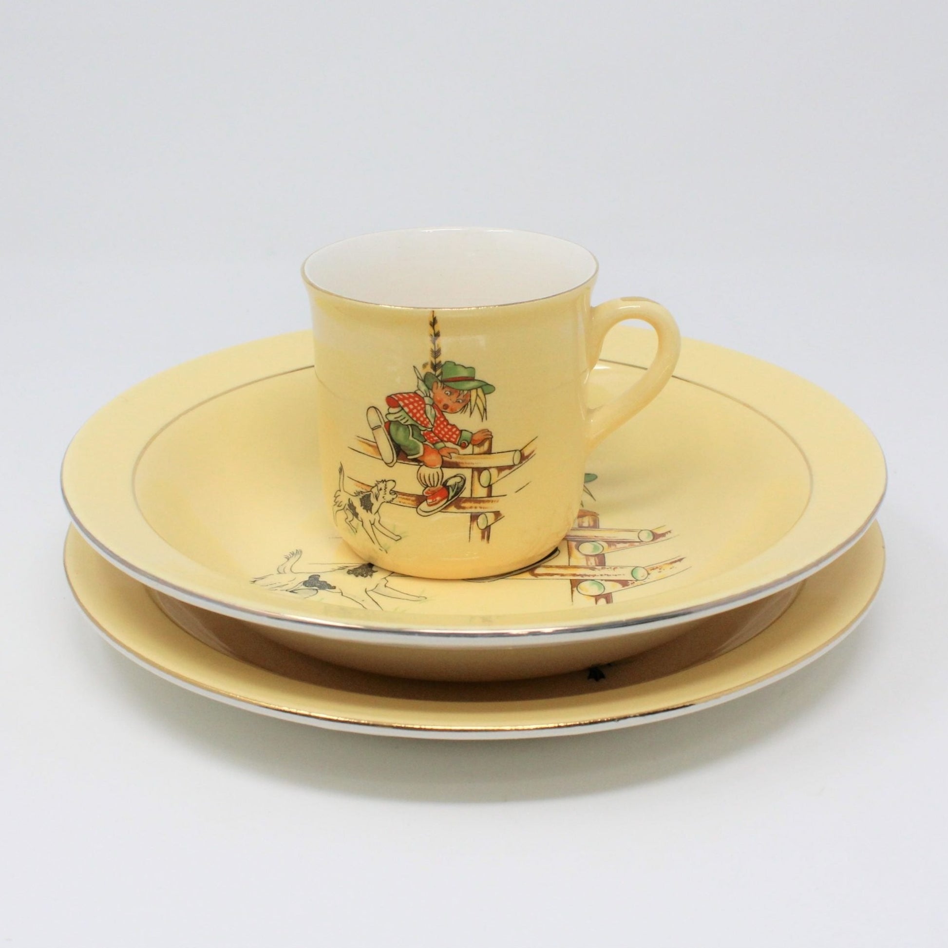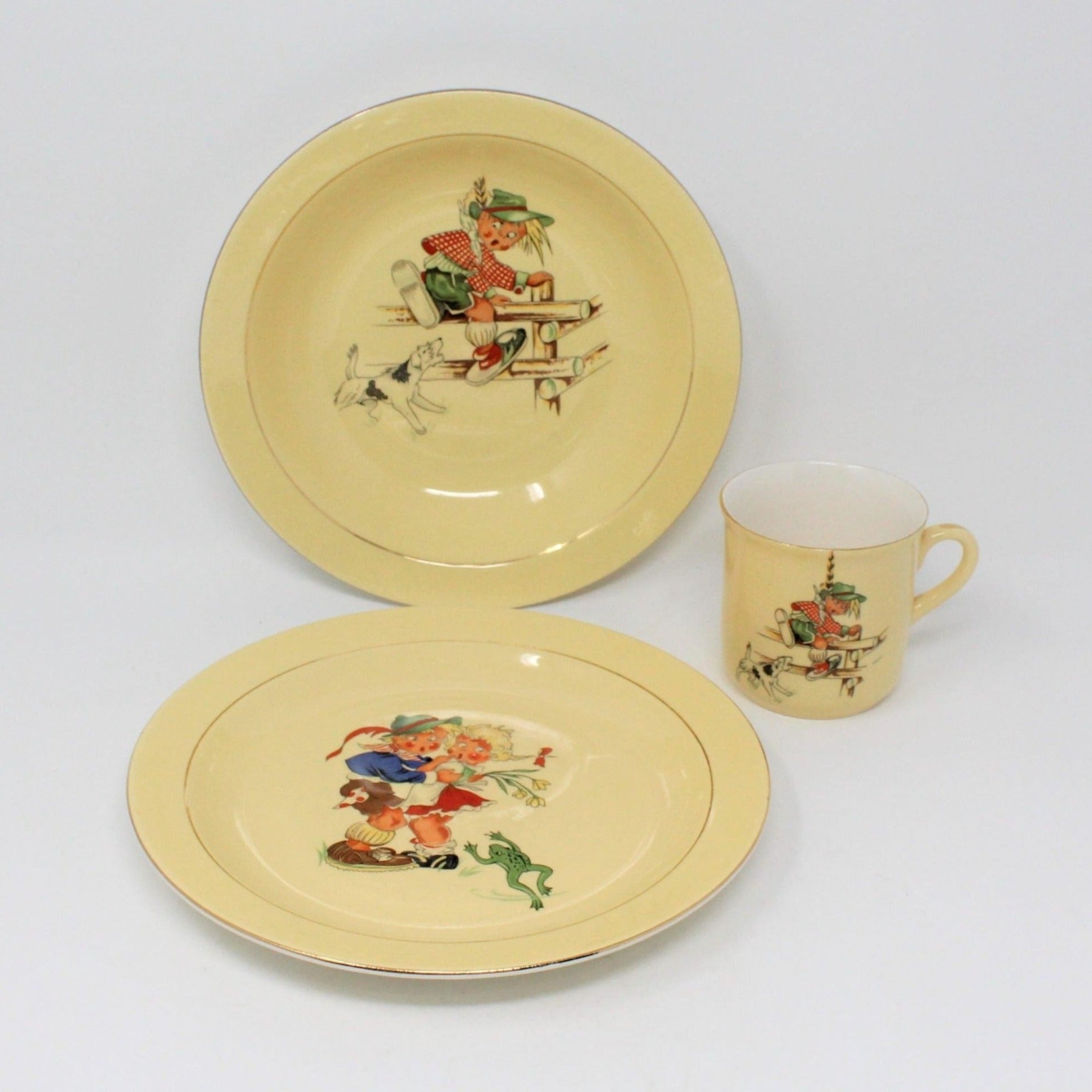 - Vintage Child's Dinnerware Set, Kids Plate, Cup & Bowl, Alpine Children with Frog, Alpine Boy with Dog, European Porcelain, Made in Norway, Mid Century Tableware for Children, Kids Dishes, Gifts for Children, Gift Ideas, (Discontinued)