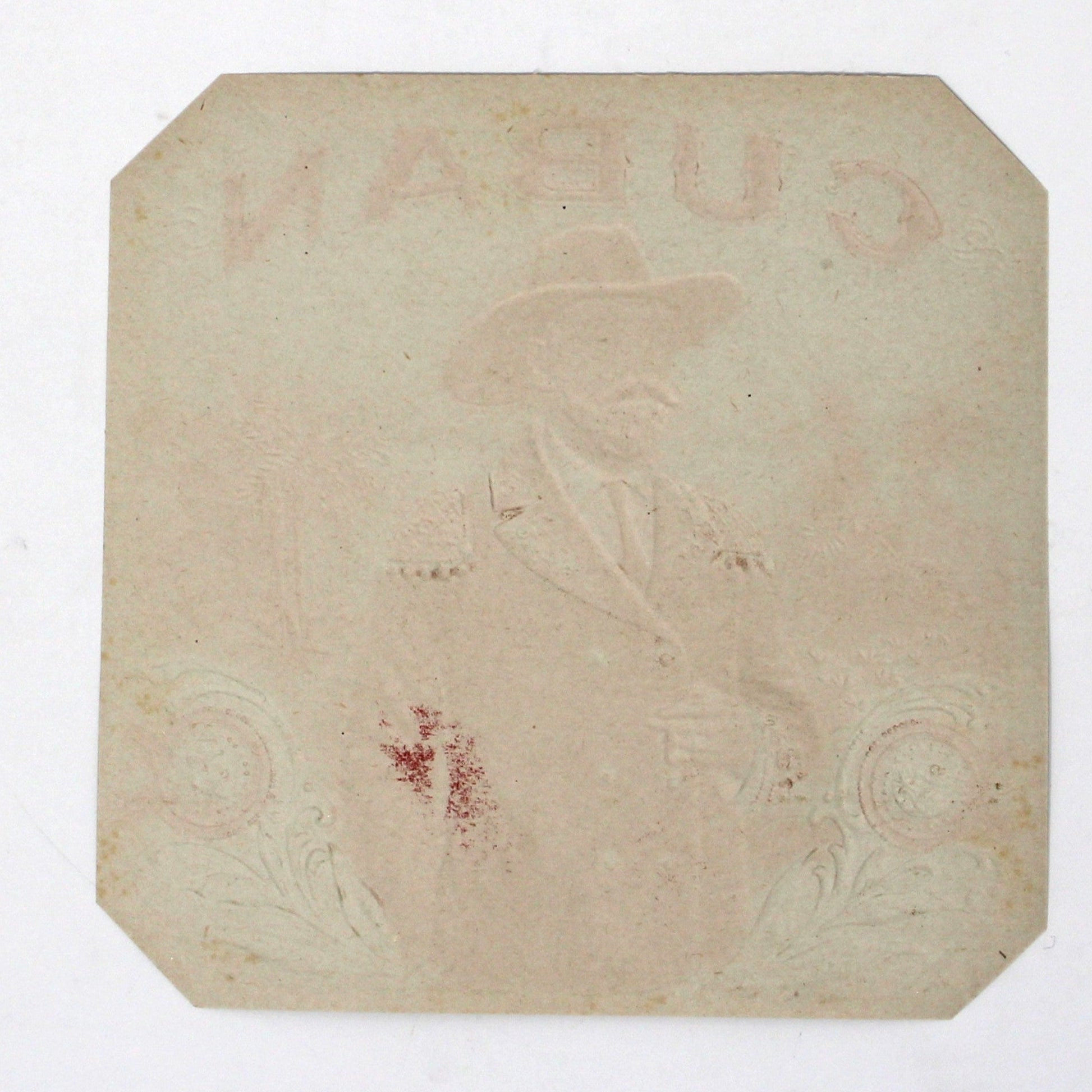 - Details: An absolutely gorgeous antique cigar label, embossed and gilded. Featuring a Cuban gentleman in the foreground, smoking a cigar, and tobacco plantation in the background. The label is marked, "Cole Litho Co Chicago". This is the original label not a copy or reproduction, it's in absolutely pristine condition. Great as a collector's item, these look wonderful framed as decor. It is a rare find in this condition, an original piece of antique advertisement.