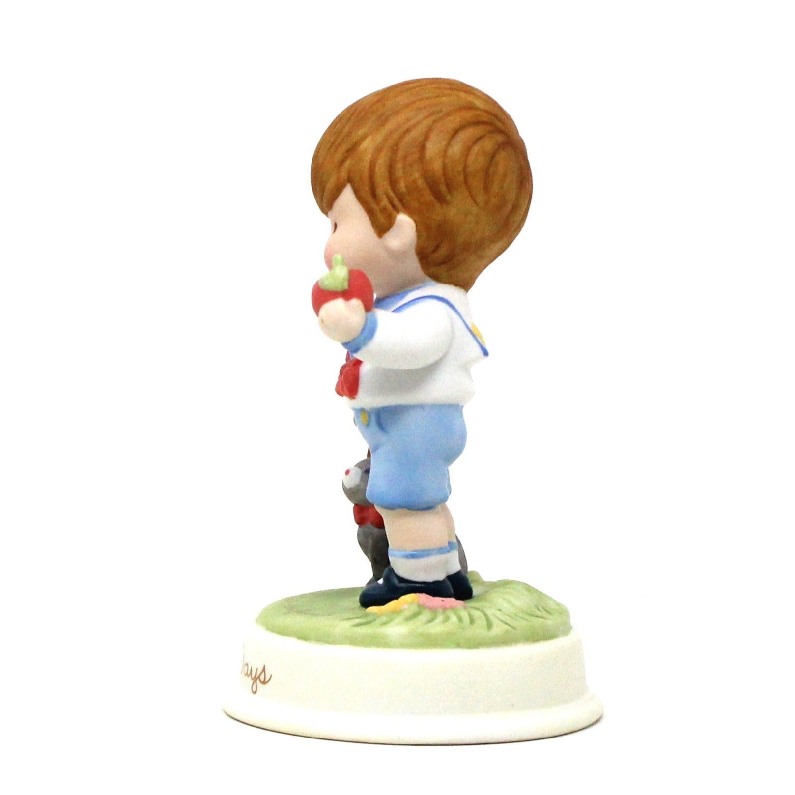 - Vintage Avon Figurine, Boy Holding Apple, School Days by Joan Walsh Anglund, Signed Collectible Figurine, Back to School, Hand Painted Porcelain, Vintage Decor, Teacher Gifts, (Discontinued)