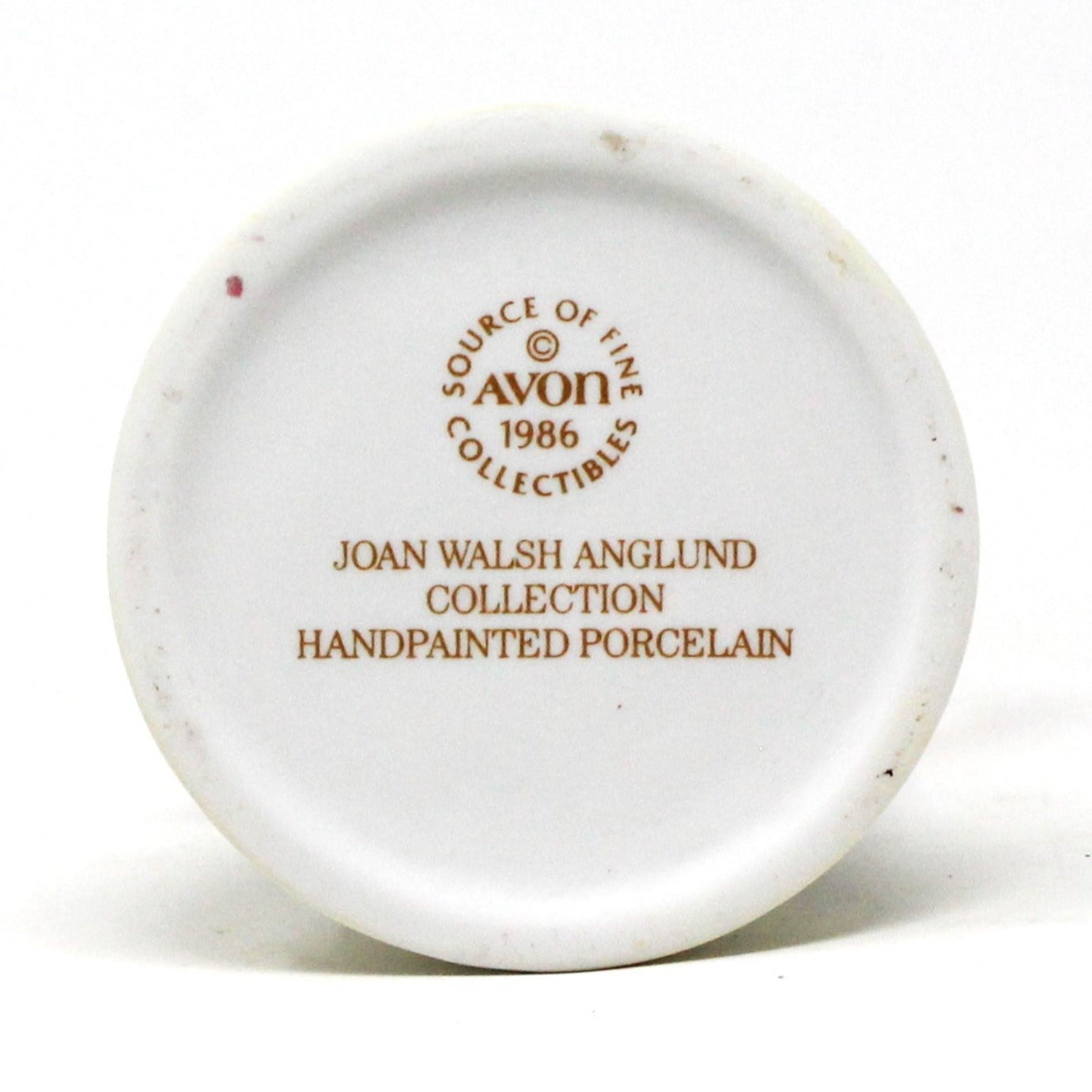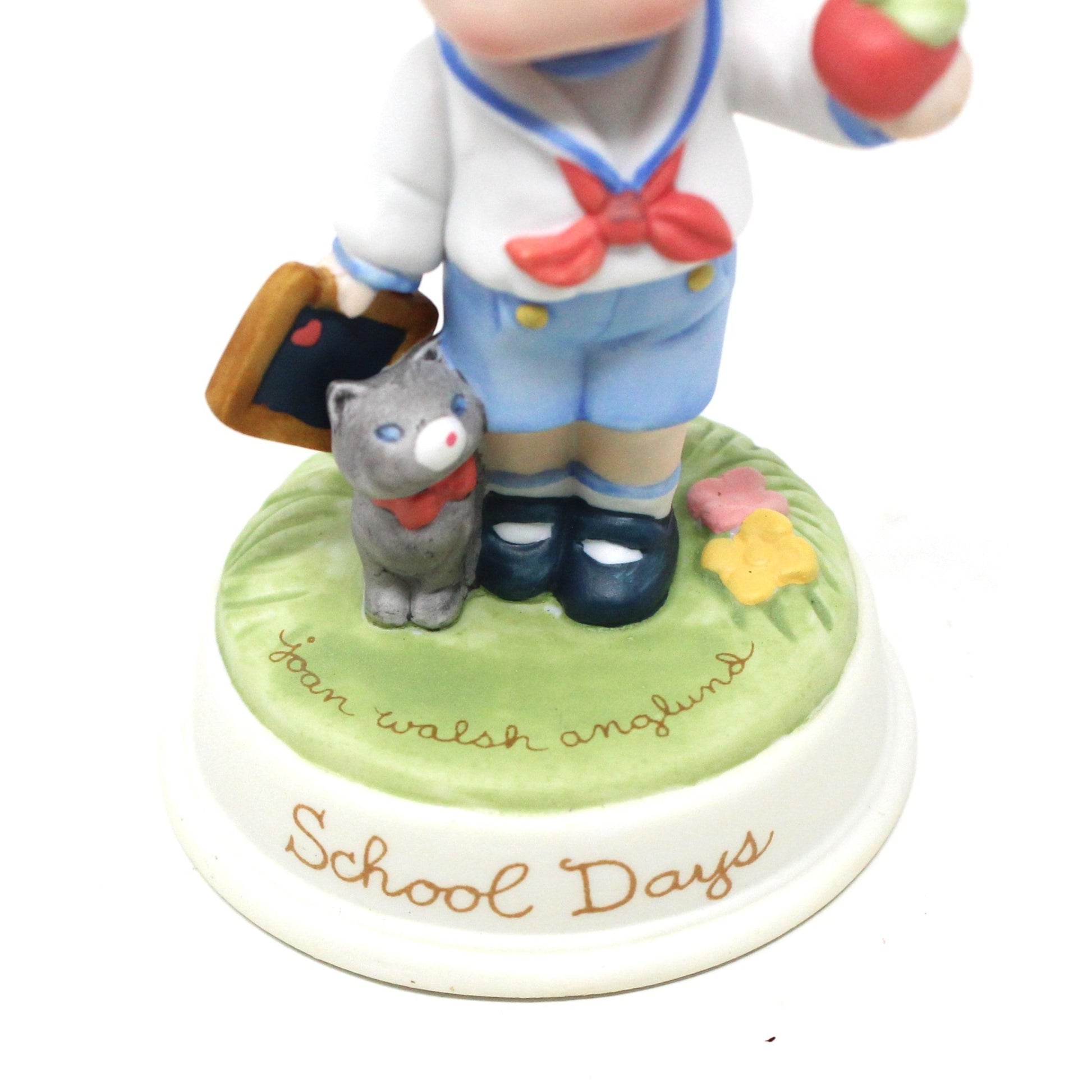 - Details: Celebrate the nostalgia of children going back to school with this vintage Avon figurine from School Days by Joan Walsh Anglund. It is hand painted porcelain featuring an iconic "Back to School" image of a little boy with an apple for the teacher. Perfect for any Anglund collector! it is stamped on the bottom: "Avon Source of Fine Collectibles, 1986. Joan Walsh Anglund Collection Hand Painted Porcelain". This figurine adds a touch of whimsy and charm to any room.