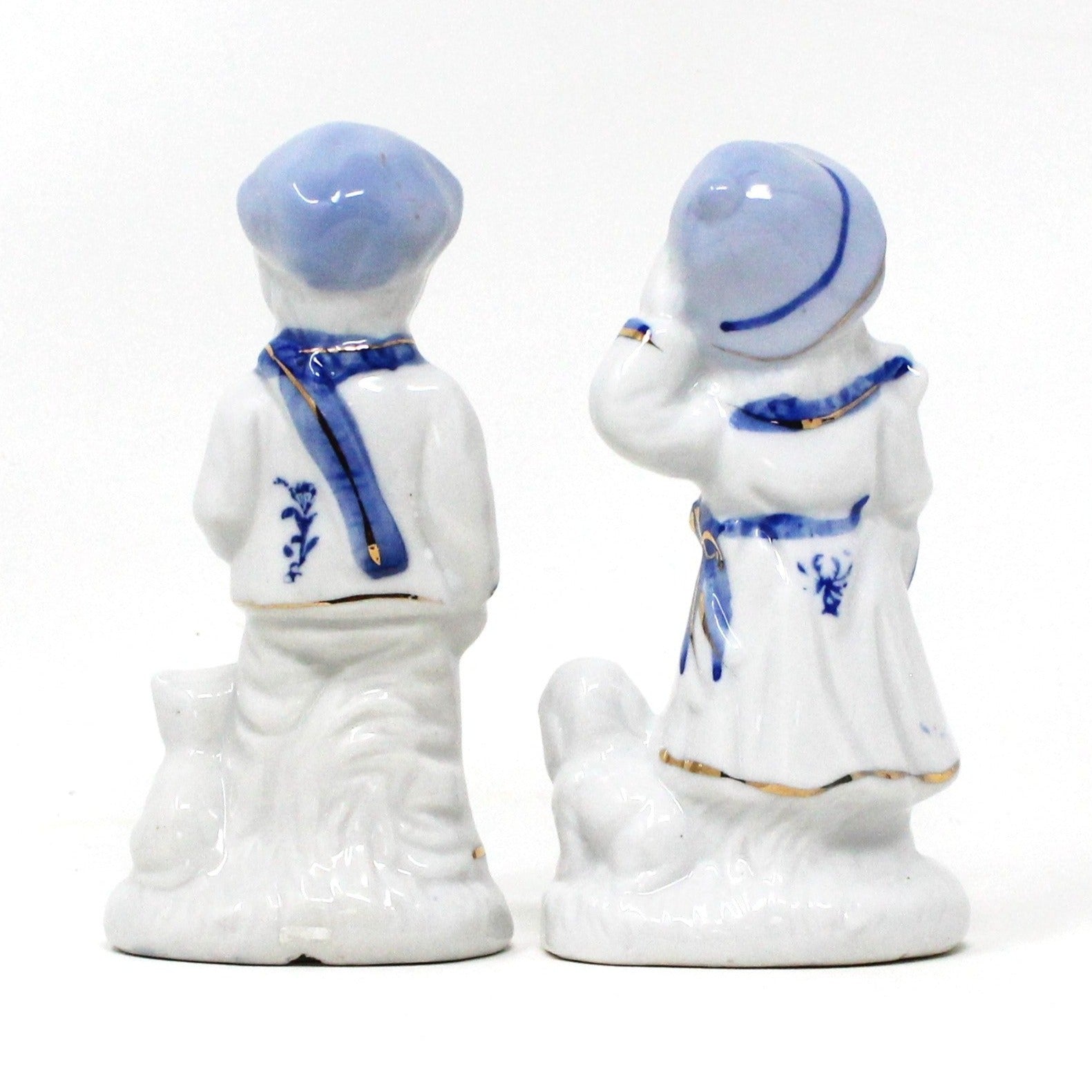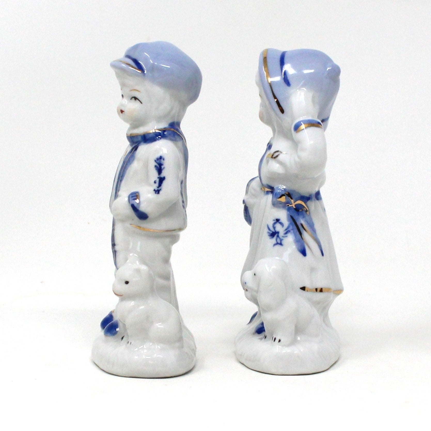 - Vintage Figurines Boy & Girl with Pets, Blue & White, Puppy Dog & Kitty Cat, Hand Painted Porcelain, Delft Style, Home Decor, Vintage Collectibles, (Discontinued)