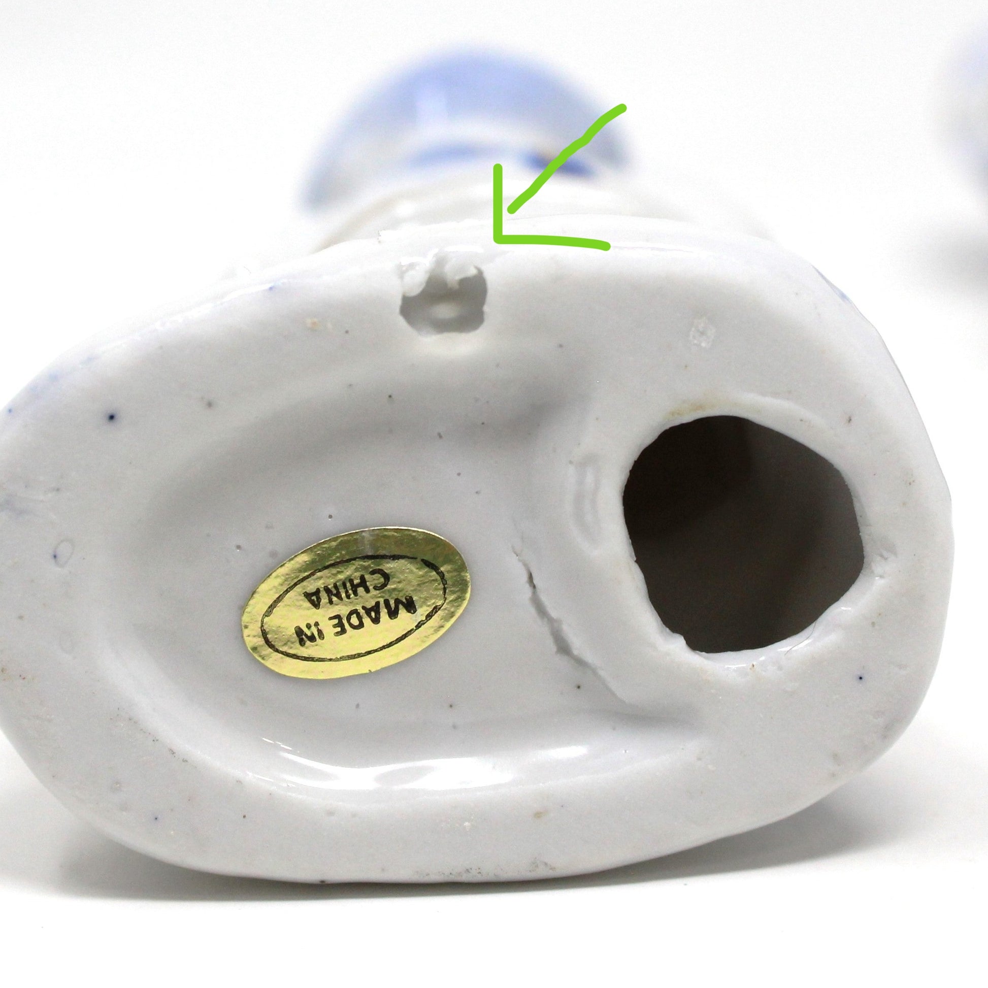 - Condition: Vintage - Used. Very Good Vintage Condition. There is a manufacturing flaw on the very bottom, it looks like a chip but it's a hole, most likely created during manufacturing. Photographed for your review. We could find no chips, scratches or any issues with either figure. Please review all pictures and make sure you love this item before purchasing, we can't accept returns. Please remember these are VINTAGE and ANTIQUE items, they are NOT new, every effort has been made to show any scratches, wear and tear and imperfections.