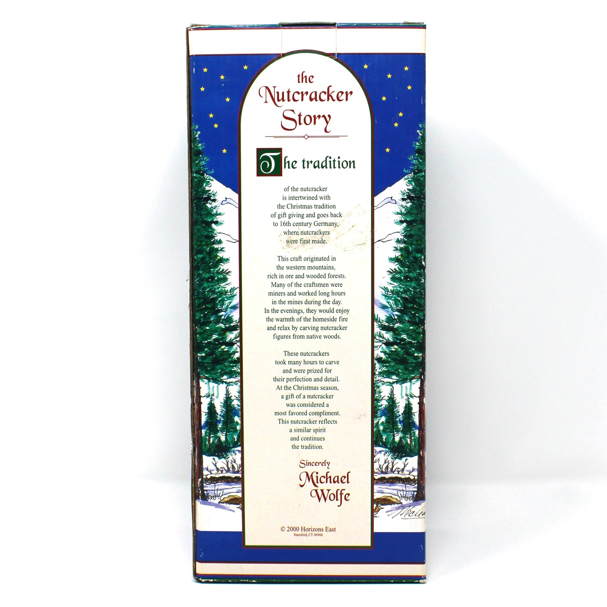 - Details: We all love nutcrackers at Christmas time. This rare wooden nutcracker figurine depicts the girl Clara, from the classic Nutcracker Ballet, crafted by renowned artisan Michael Wolfe for Horizons East. Clara is holding the toy soldier nutcracker gifted by her Godfather. Never used and in original packaging, this vintage collectible showcases traditional craftsmanship with meticulous hand-carved details. A discontinued piece that captures the enchantment of holiday tradition, it's an ideal addition for serious collectors and those seeking authentic, high quality seasonal décor. Perfect for display during the holidays or year-round as a conversation-starting accent piece. This is NOT A TOY, best for teens and adults. This is NOS (New Old Stock), never been used, still in its original box. Great addition to your holiday decor and the perfect gift for a Nutcracker collector.