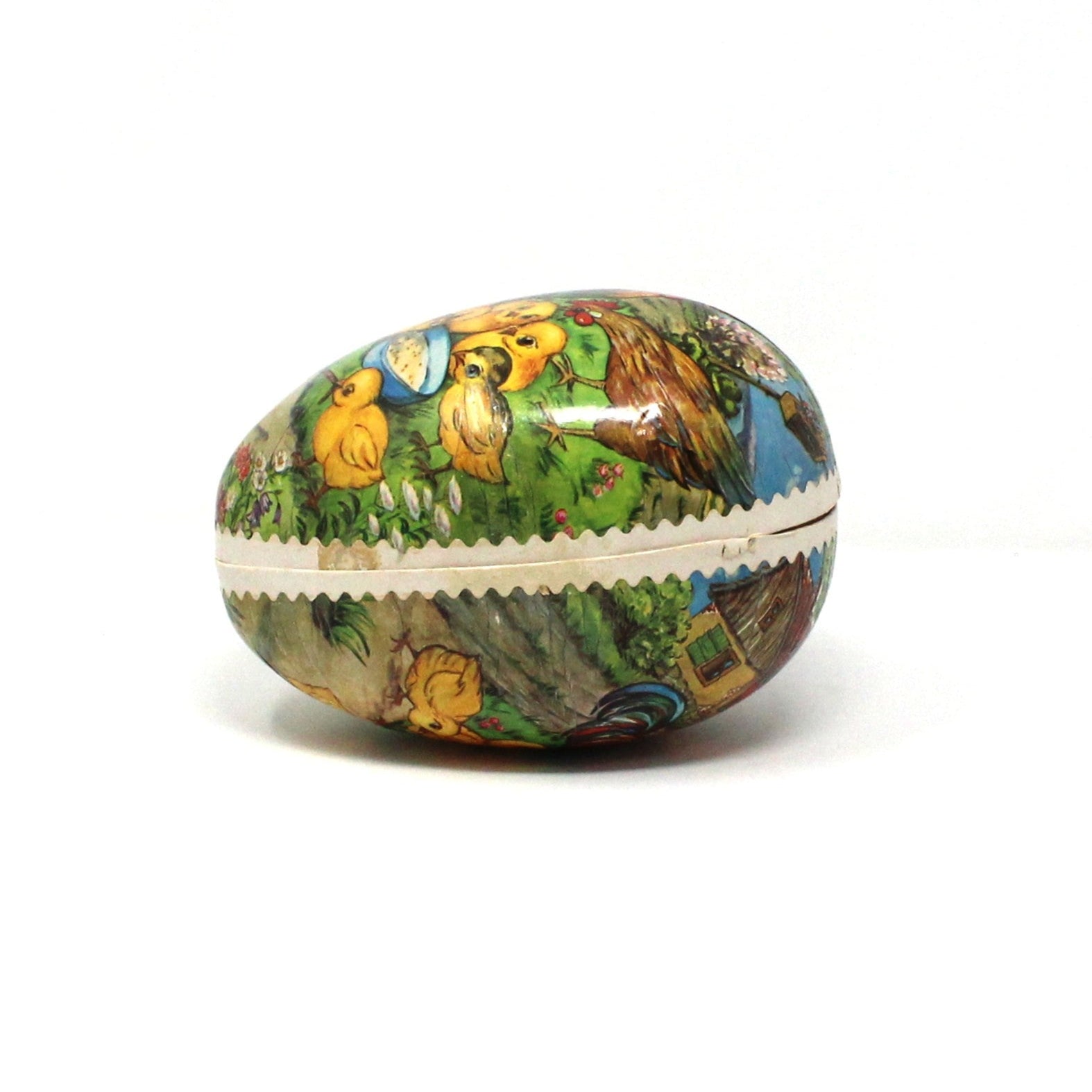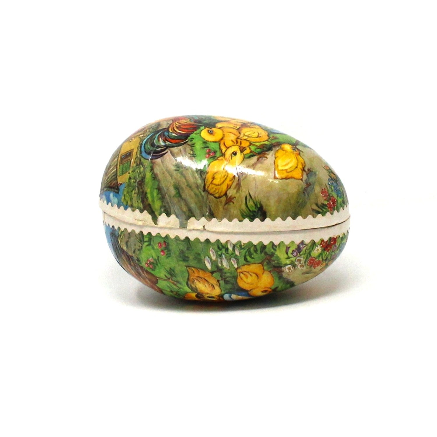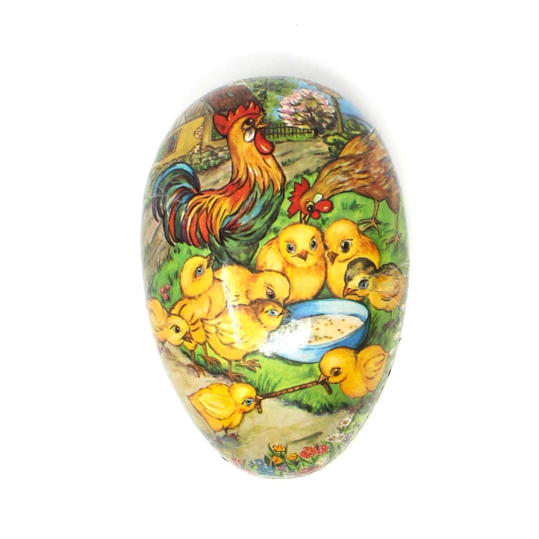 - Vintage Egg Shaped Gift Box / Candy Box, Paper Mache Easter Egg Candy Box, Decorative Box, Chicken Family with Rooster, Hen and Yellow Baby Chicks, Seasonal Decor, Spring & Easter Decor, Gifts for Children, Easter Bunny Treats Box, Holiday Collectibles