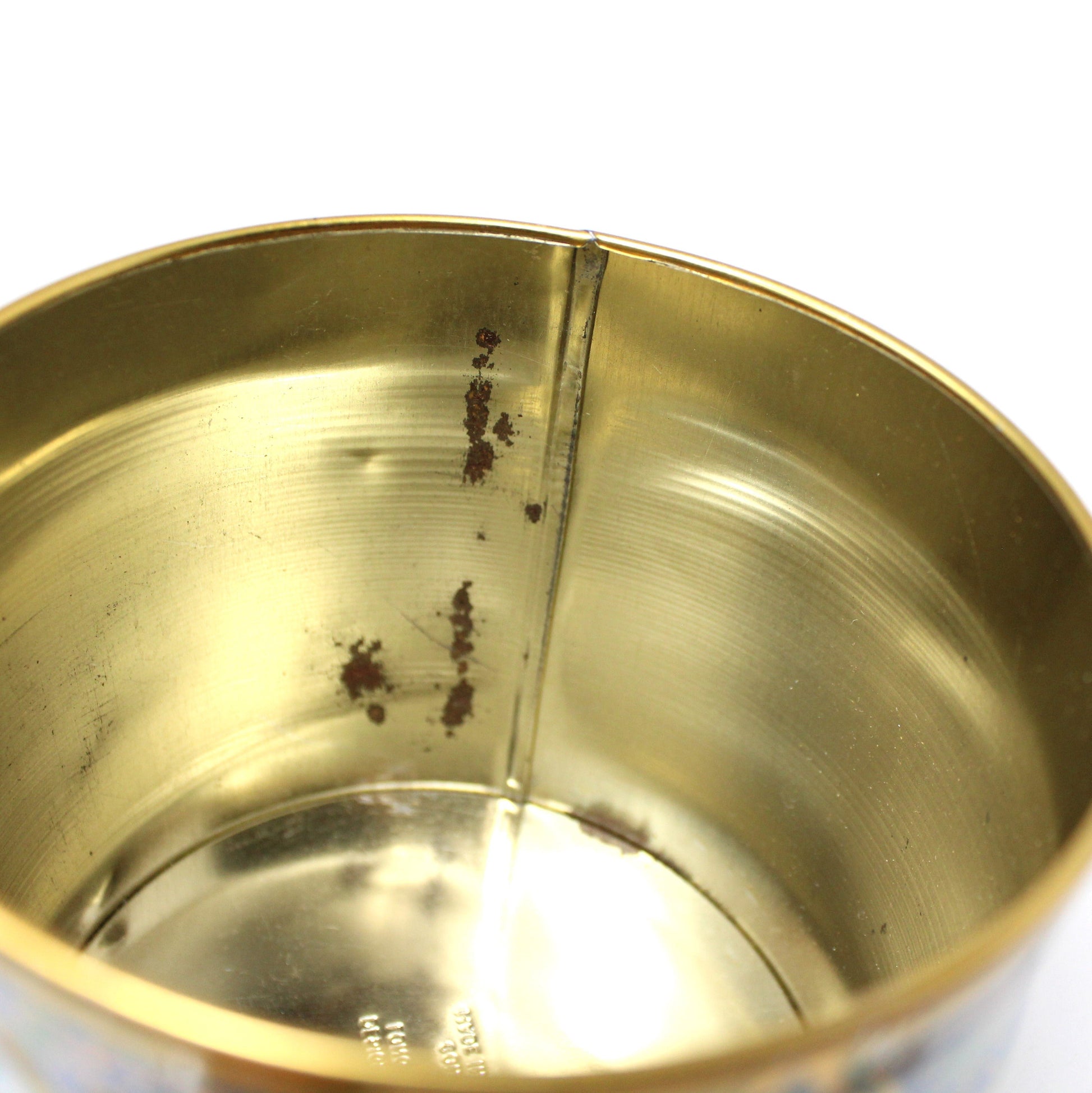 - Condition: Vintage - Used. Very Good Vintage Condition. There is one dent, not visible from the outside, we photographed the inside for your review. As with all these old tins, there is wear, minor surface scratches and some rust spots. We feel all is acceptable due to age/use/wear, however, we would not recommend using for food items, for display only. Please review all pictures and make sure you love this item before purchasing, we can't accept returns. Please remember these are VINTAGE and ANTIQUE items, they are NOT new, every effort has been made to show any scratches, wear and tear and imperfections.