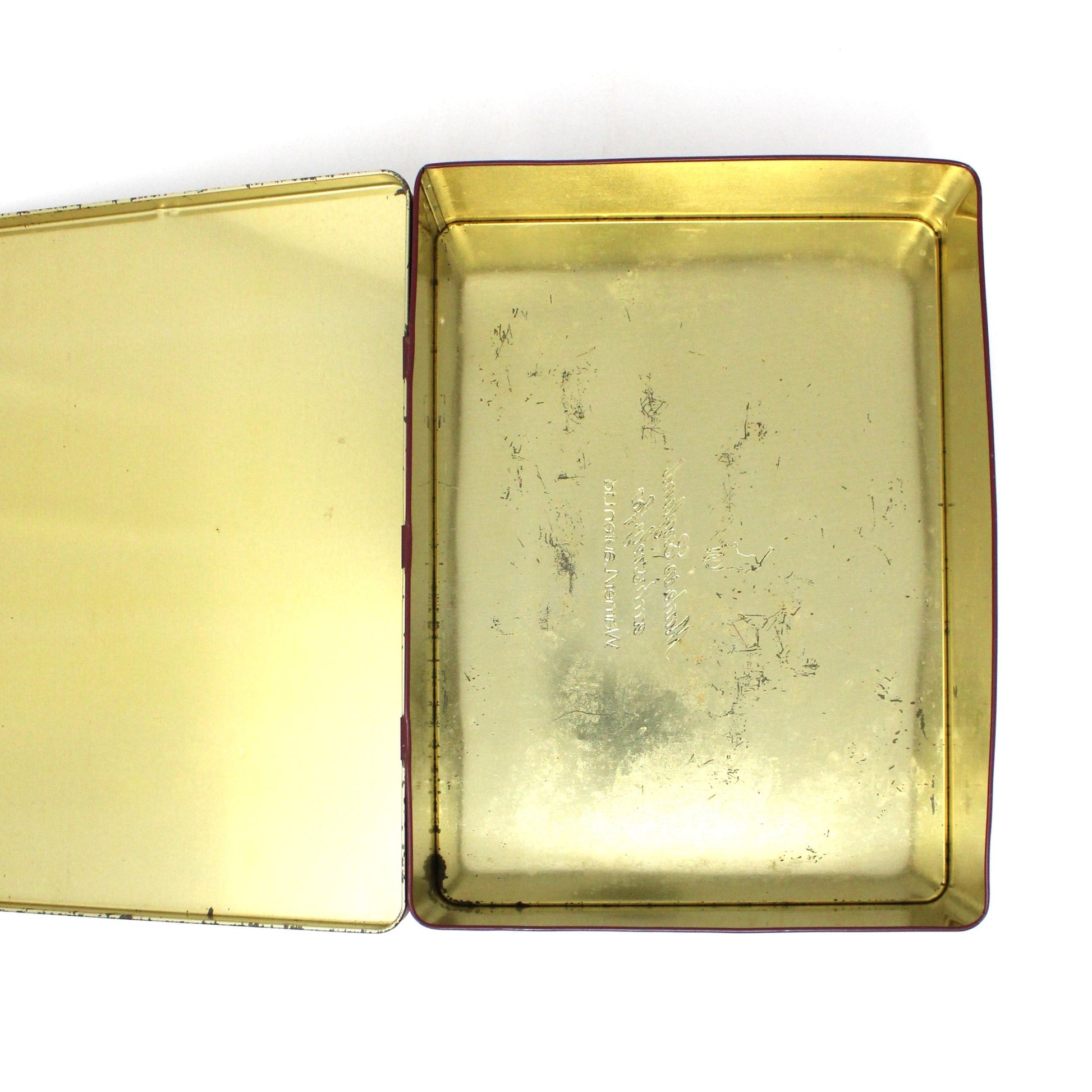 - Details: This is an exclusive tin, made in England for Warner/Lauren LTD in the 1970's, after Ralph Lauren's Polo launch, and everything equestrian that followed. The beautiful image of a Victorian woman riding side saddle engaged in a fox hunt is from an engraved print by Charles Hunt (1803-1877), from the original painting by John Sturgess (a hunting and racing artist and lithographer 1839 - 1903), he titled: "Not This Time". The bottom of the tin is embossed: "Made in England Exclusively for Warren/Lauren LTD" and has the Ralph Lauren Polo logo. The tin has a hinged lid and it's empty. This is a promotional collectible tin, a must-have for tin collectors. Limited edition, discontinued, and highly sought after.