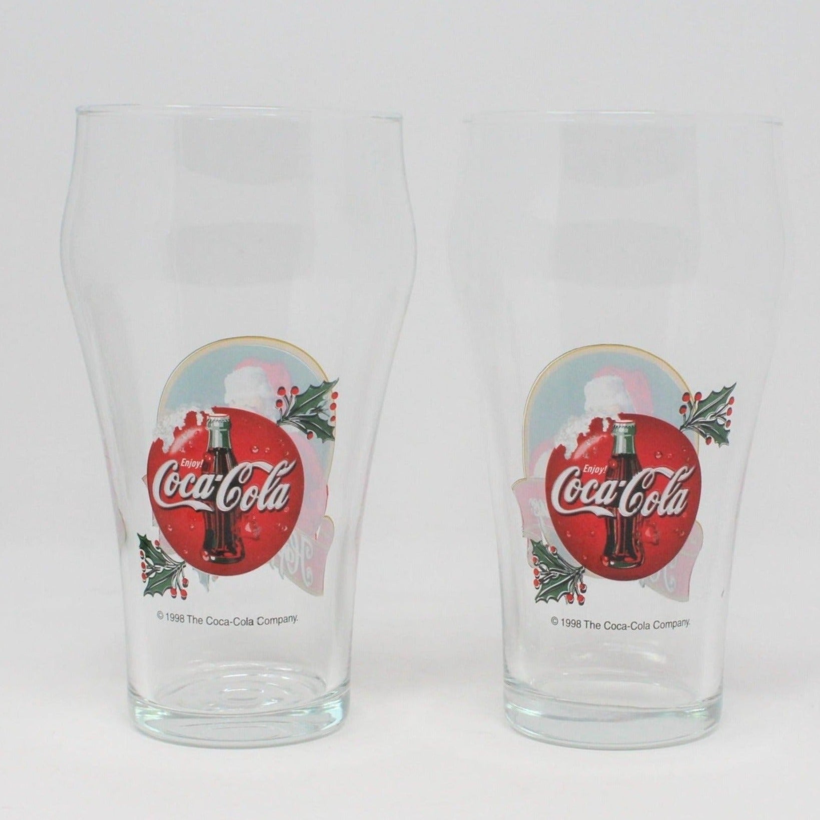 Glasses, Coca Cola Bell Glasses, Happy Holidays, Santa, Set of 2