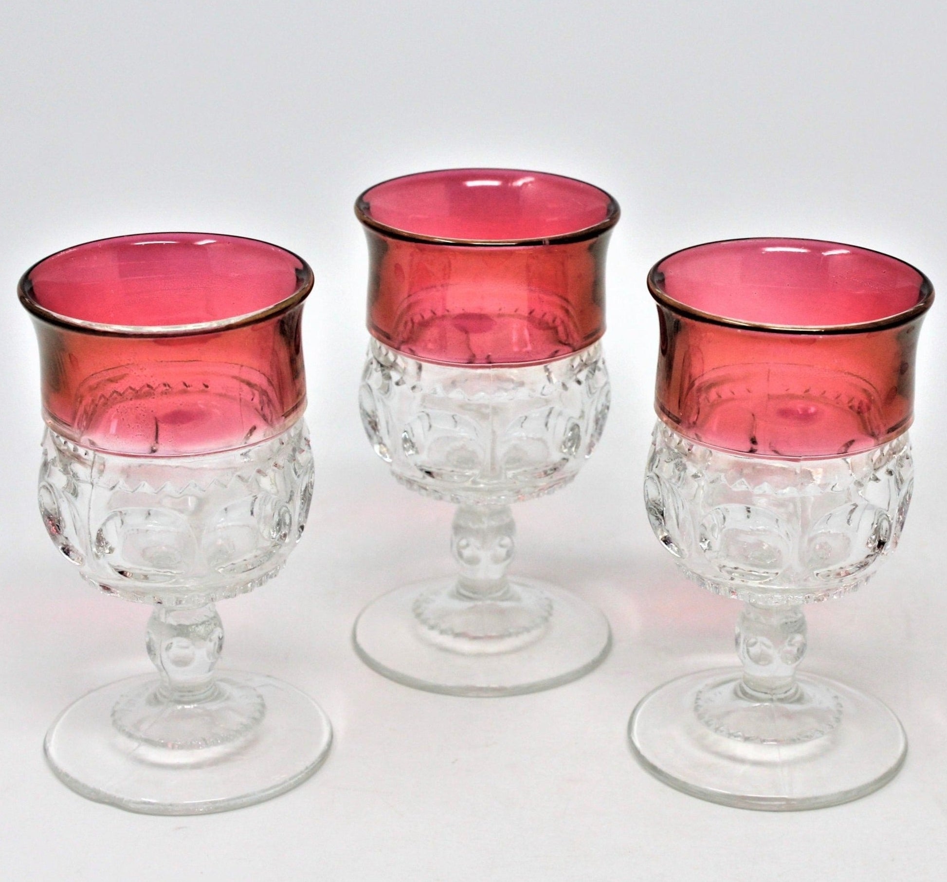 - Vintage Stemmed Cordial Glasses, King's Crown or Thumbprint Kings Crown / Colony Crown / Ruby Crown, Thumbprint Cranberry, Indiana Glass Stemware, Mid Century Barware Barware, Collectible Drinkware, (Discontinued)