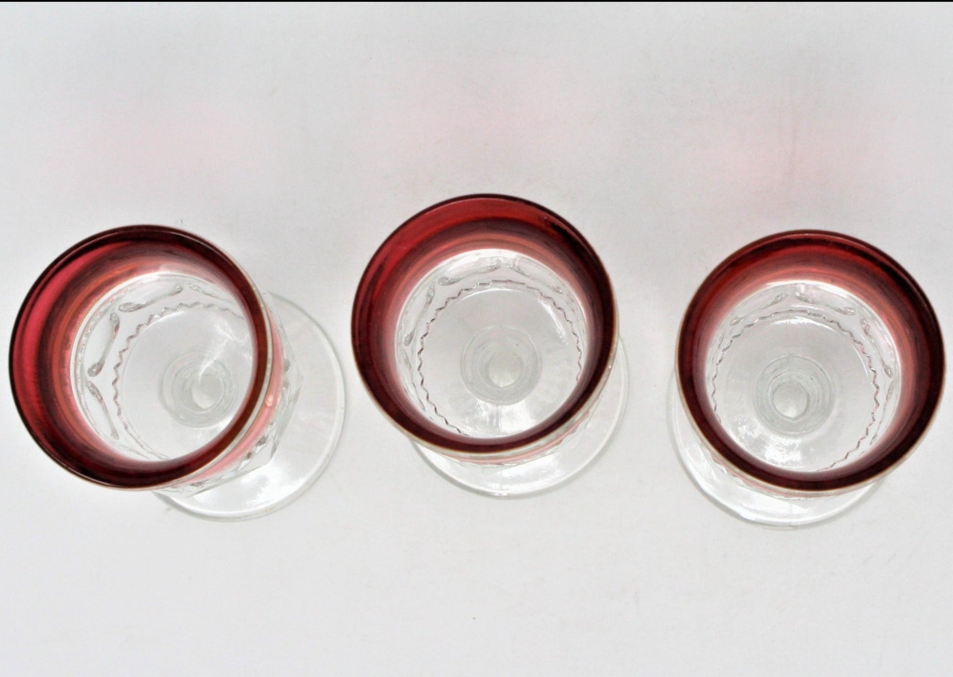 Cordials, Indiana Glass Kings Crown (Thumbprint) Ruby Iridescent, Set of 3, Vintage