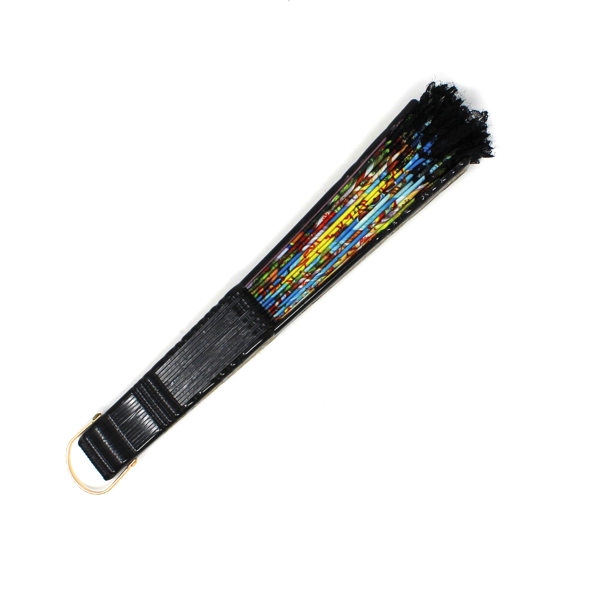 Hand Fan, Spanish Style, Souvenir, Gran Canaria, Canary Islands, Open Cut-Work, Black Lace, Vintage