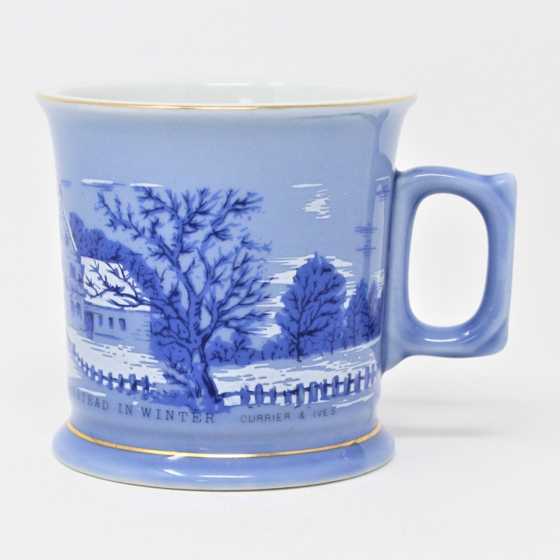 - Vintage Shaving Mug, Currier & Ives, The Homestead in Winter, Blue & White, Collectible Mugs, Personal Care, Men's Grooming, Father's Day Ideas, Gifts for Men, Porcelain, (Discontinued)