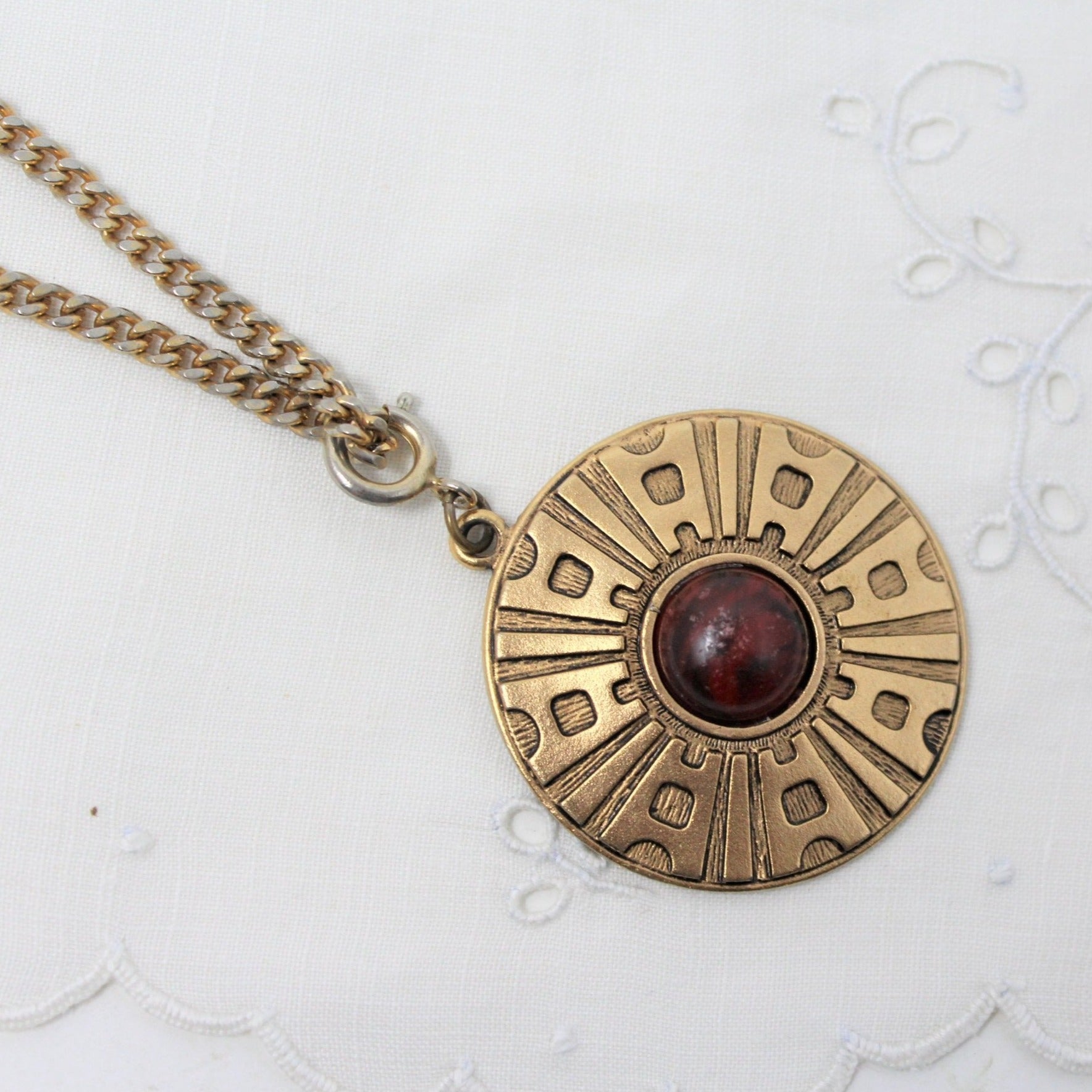 - Brand: Vintage Sarah Coventry Pendant Necklace, Safari / Aztec Medallion Cabochon Pendant