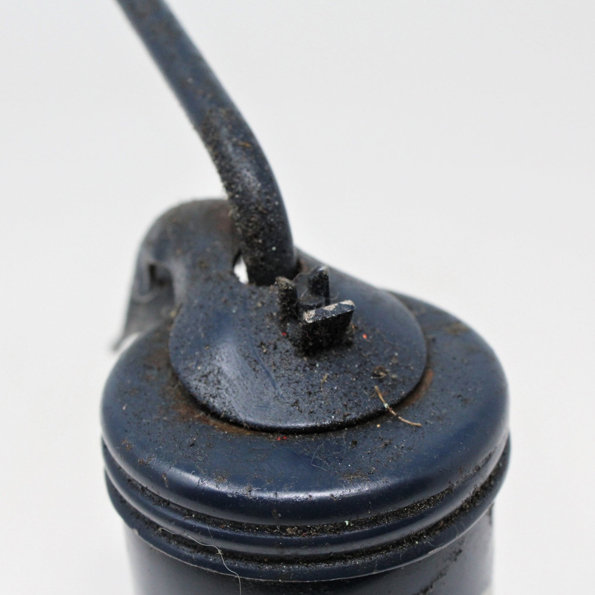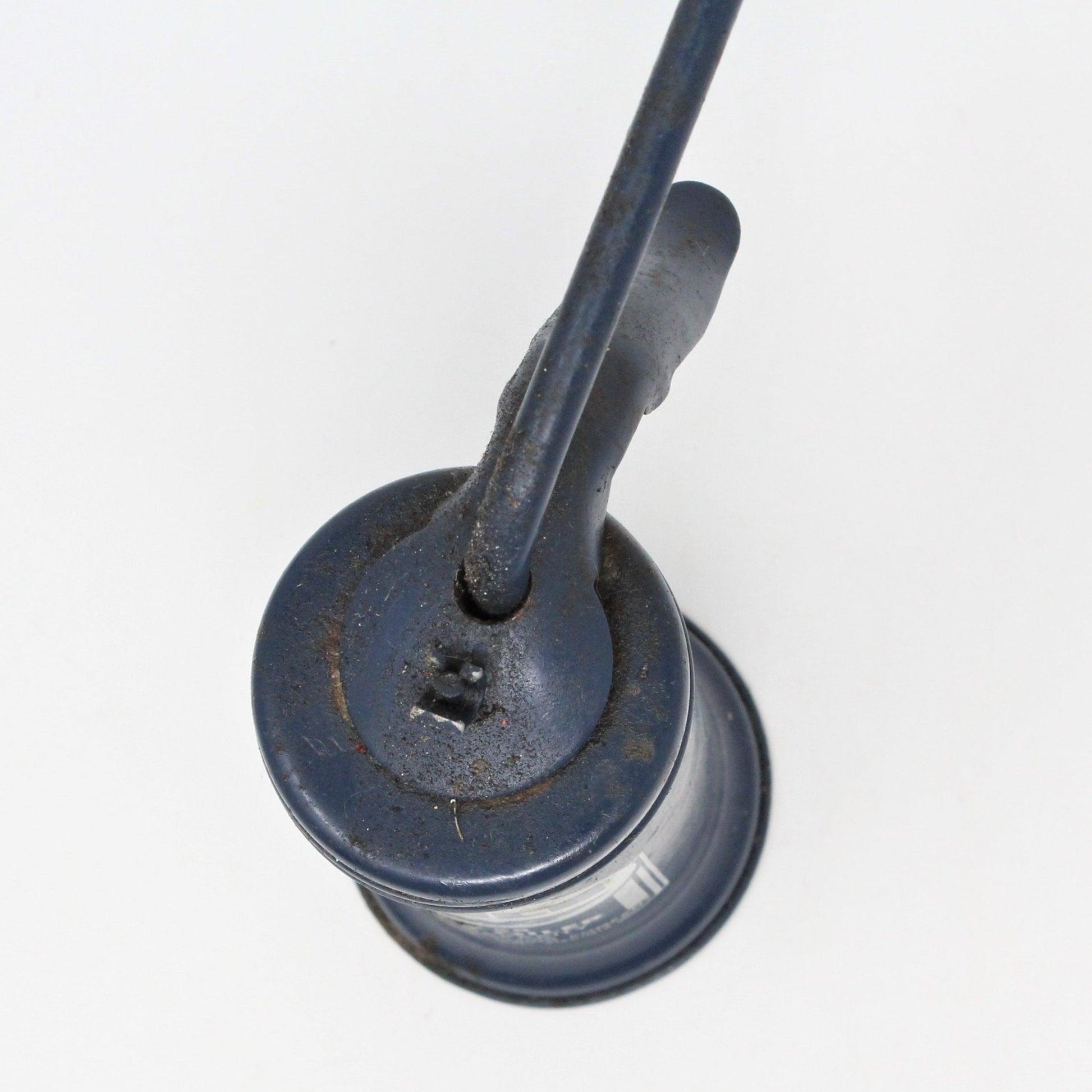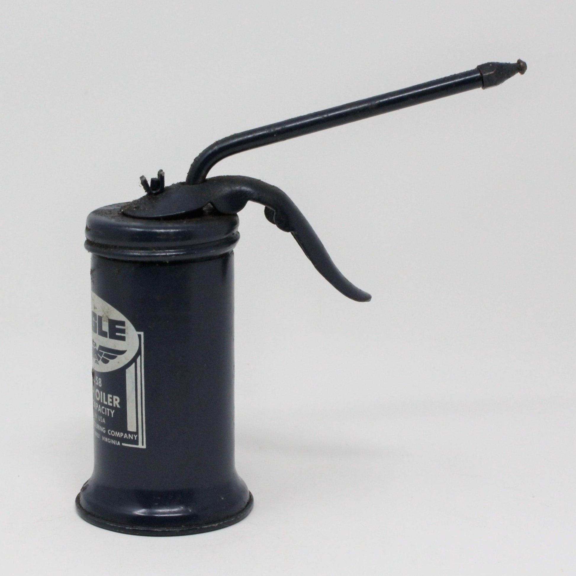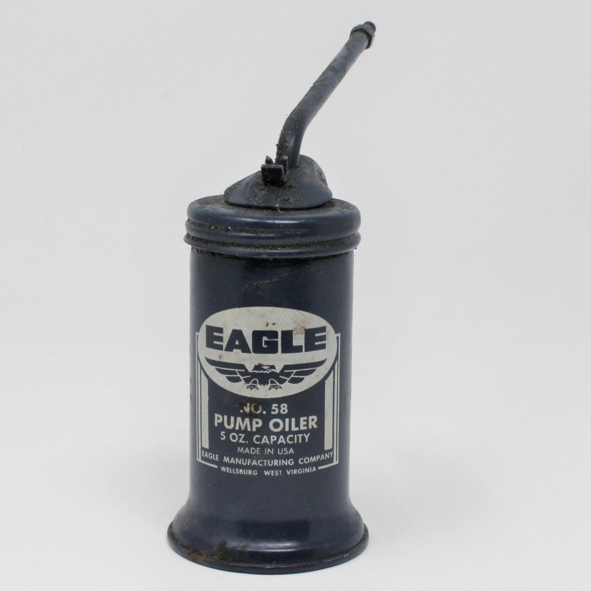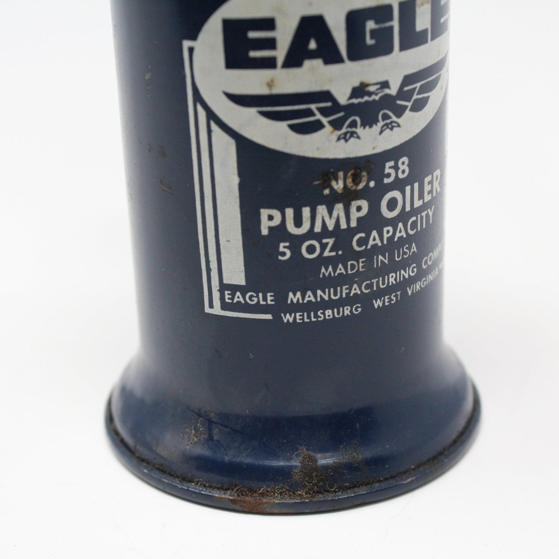 - Details: This is such a nice little oiler! They were made in the 1950's by the Eagle Manufacturing Company in West Virginia. This one is navy blue with white lettering, it is a bit dirty (and oily), but it still works, it can be opened. We did not clean it, as many enjoy the look of time-worn, used tools. We think this would make an excellent gift for father's day, for a collector, or a man who loves to tinker with cars. Perfect for someone who appreciates the well worn look of old tools. Makes a great garage or man-cave decor piece.