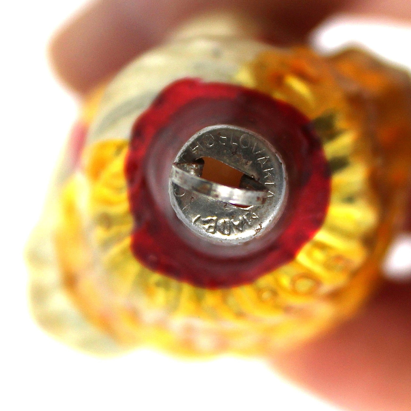 - Details: This truly will become a family heirloom! It's a mouth blown, mercury glass figural ornament, possibly antique, but we try to be conservative when dating these. It is known as Goldilocks, and hand painted in red and yellow. It has the tell-tale pontil mark of blown glass ornaments, the cap is marked "Made in Czechoslovakia". Excellent detail and craftsmanship, ready to hang. A great addition to your own Christmas tree, makes a great gift too! We offer 20% off on the purchase of 3 or more ornaments. Please Contact Us, let us know which ornaments you're interested in to receive discount. We have 3 available, all in very similar condition. We will sell at random unless you specify, 1, 2, or 3 at check-out (Notes).