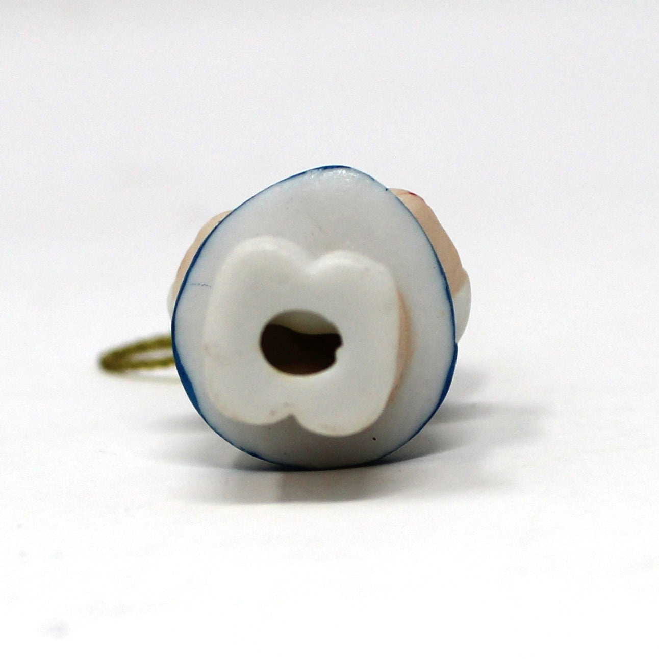 - Details: Charming vintage porcelain bisque ornament featuring an adorable little girl clutching a delicate heart—a sweet addition to any holiday collection. This miniature treasure captures nostalgic Christmas spirit with its intricate details and timeless appeal. She reminds us of the Frozen Charlotte dolls of yesteryear but she is more contemporary, unmarked, we were unable to find any information on this little doll, if you have some background, we'd love to learn more. Perfect for decorating the tree, using for arts & crafts or for gifting to fellow miniature ornament enthusiasts. A delightful piece that brings warmth and whimsy to your seasonal décor.