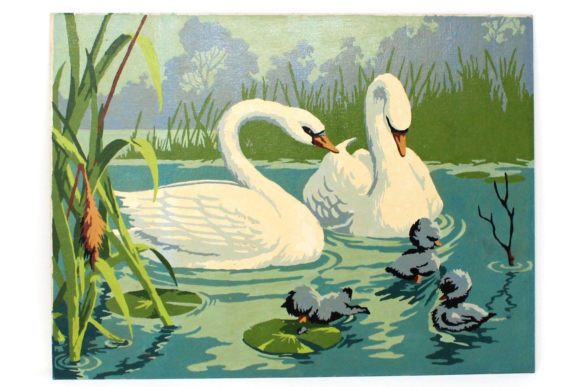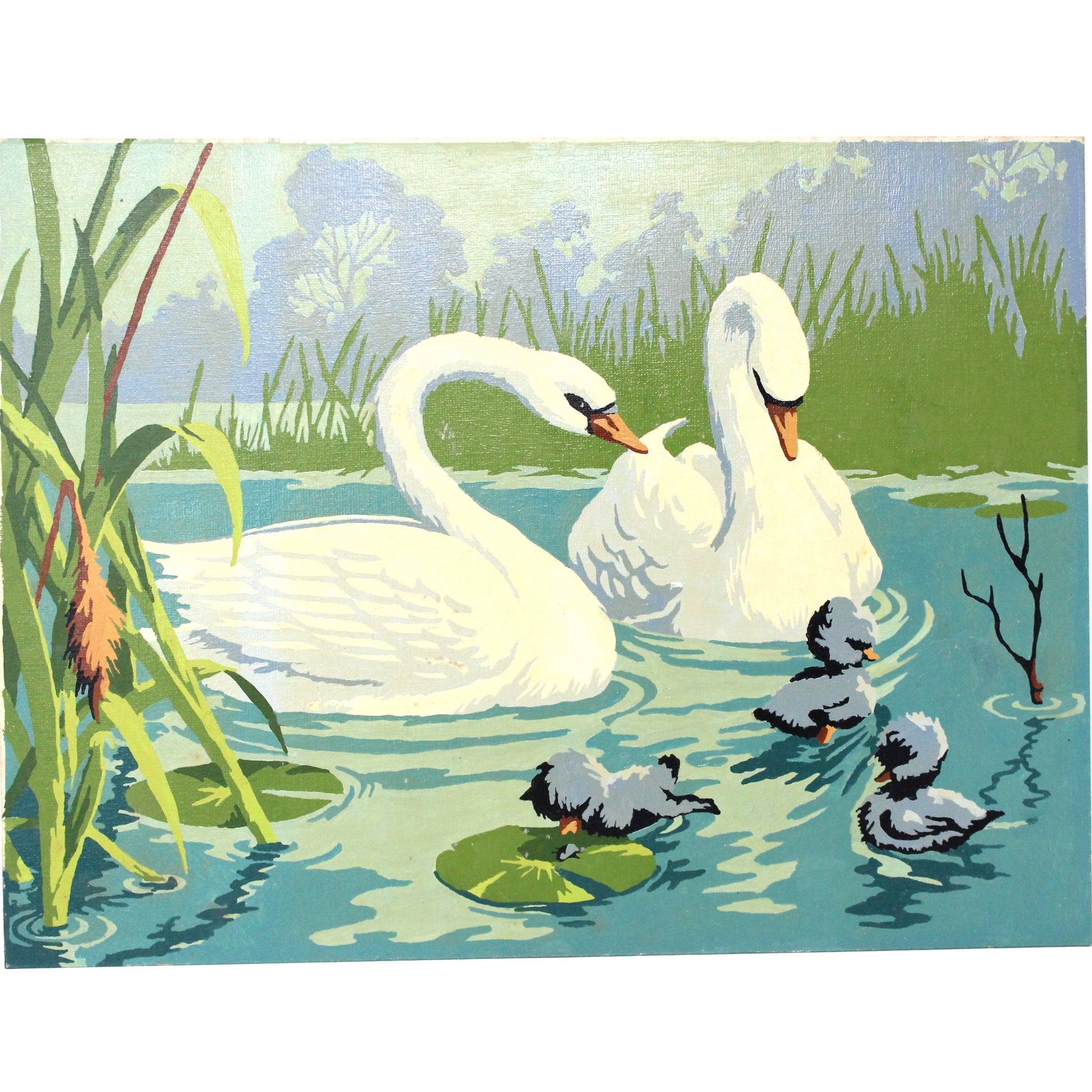 - Vintage Art, Large Size Paint By Number, Swan Lagoon, Swan Family, Swans and Cygnets, from Craft Master, Birds, Water Birds, Wall Decor, Unframed Board, Vintage Collectibles, Completed (Discontinued)