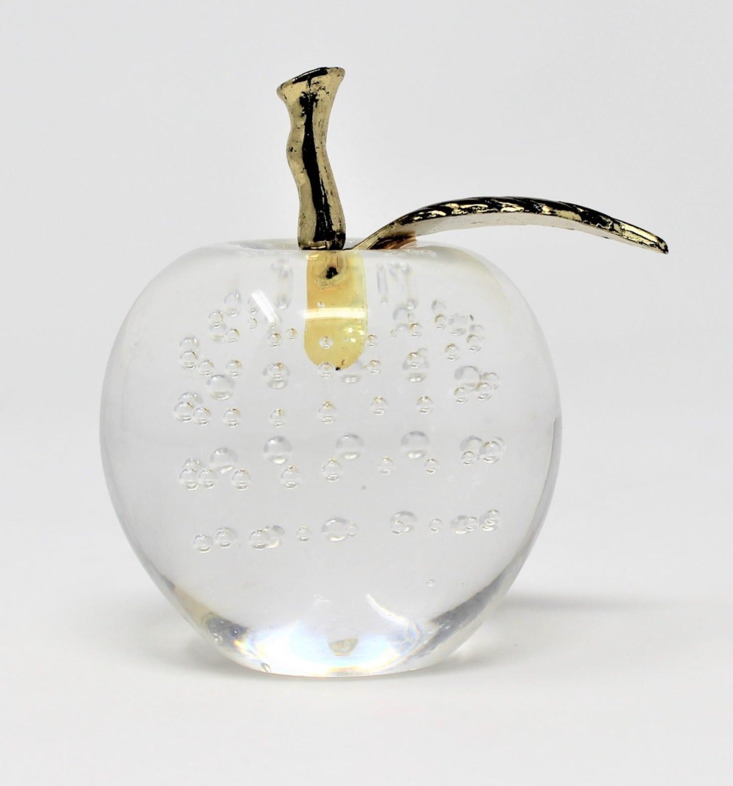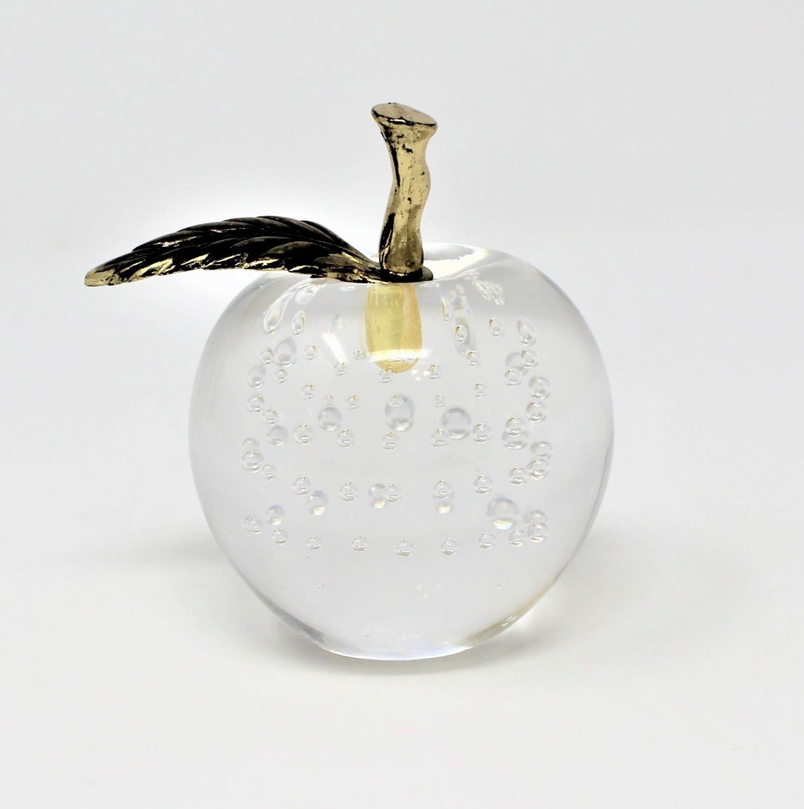 - Vintage Paperweight, Bubble Glass Apple, Controlled Bubbles, Brass Stem, Home Decor, Desk Accessories, Office Gifts, Apple Shaped Figurine