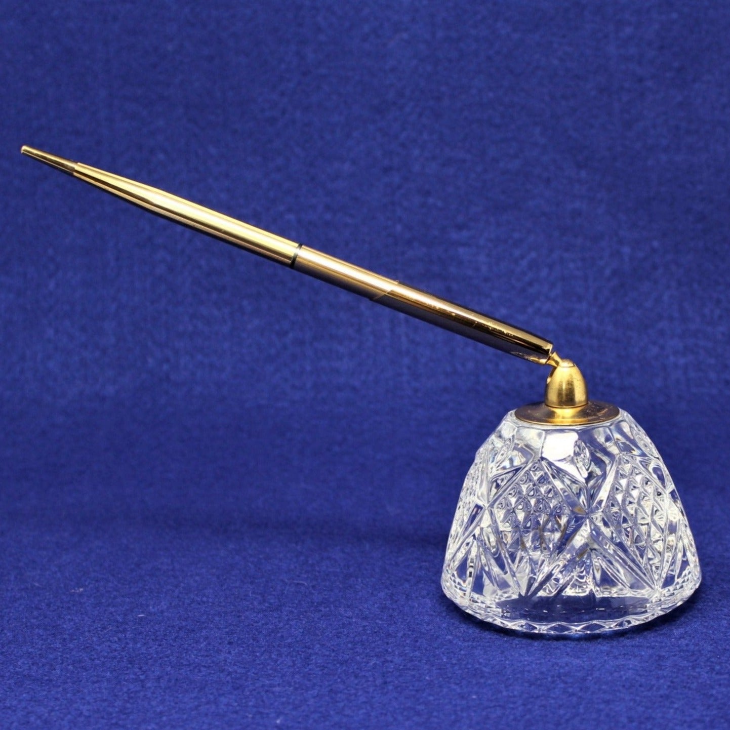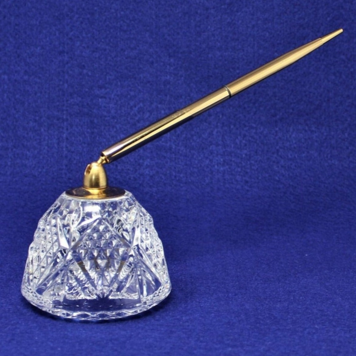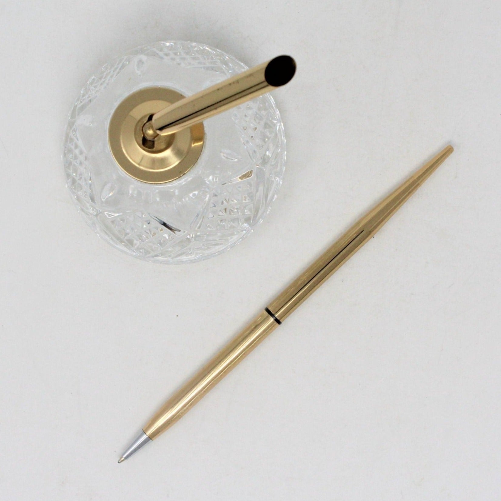 - Crystal Paperweight and Pen Holder, 24% Lead Crystal with Gold Tone Pen, Refillable, Salzburg French Cut Crystal Pattern, Elegant Writing Tools, Vintage Office Gifts, (Discontinued)