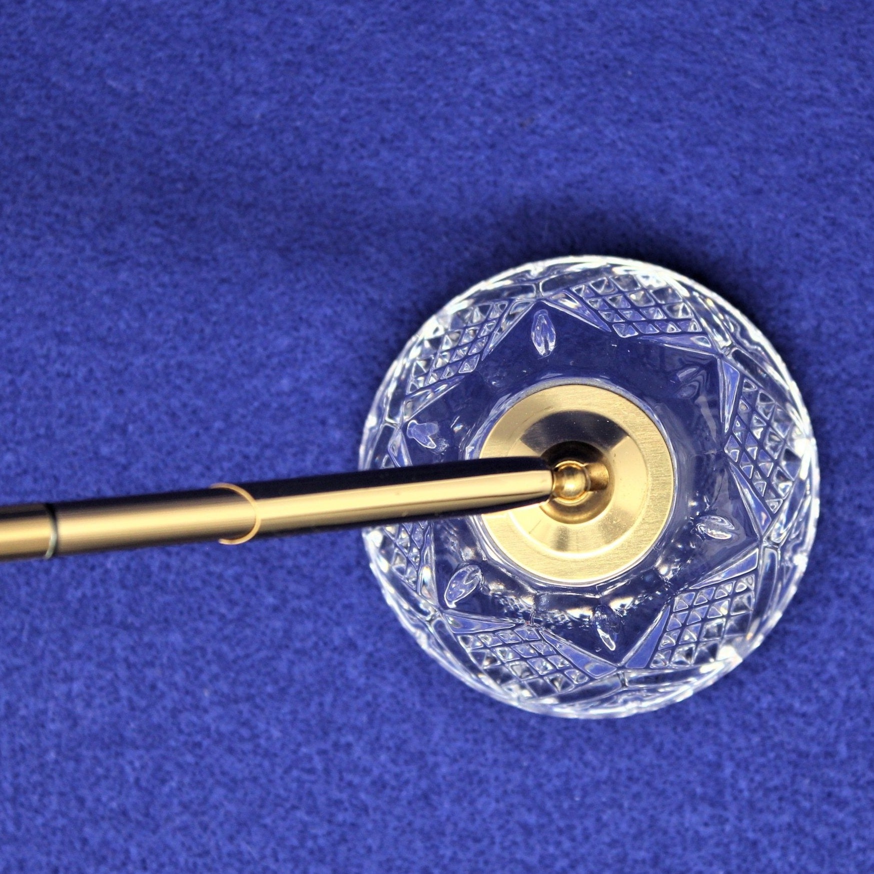 - Details: An absolutely gorgeous piece of crystal, made by Cristal de Flandre in gorgeous 24% lead crystal, a cut-fan design makes this piece reflect light beautifully! It retains the original gold tone pen, and it still writes! (not sure how much ink is left). The pen is ribbed, it has a black stripe in the center and it narrows to a point at the end. This piece is quite heavy for its size, so it can also be used as a paper weight too, it would enhance any desk. Makes a wonderful Father's Day gift, host gift, or gift for the Boss.