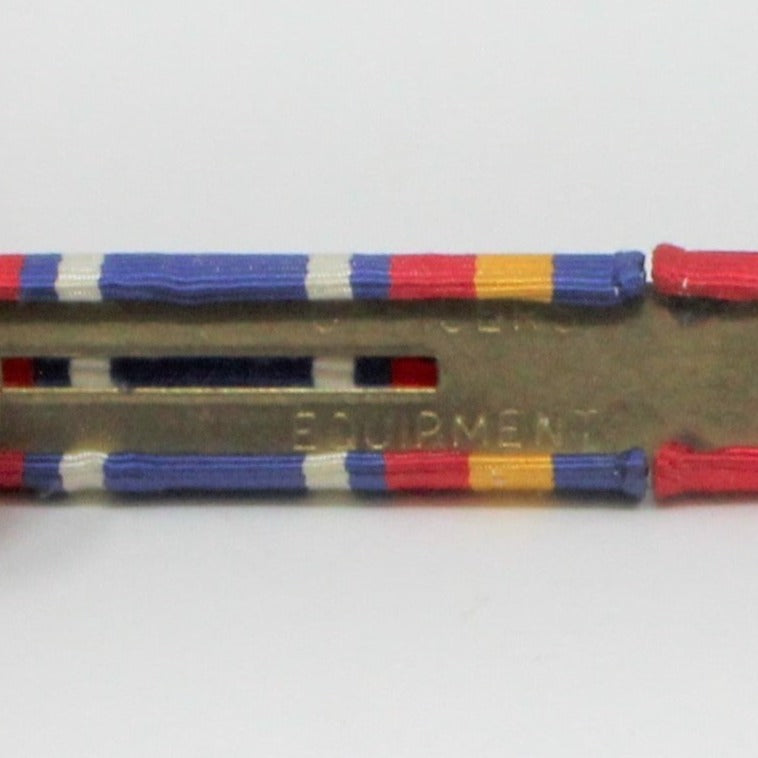 - Details: We don't know much about these military ribbon badges, but found them to be very pretty and colorful. Many people collect military surplus, badges, metals and other types of military items, if this is you, we hope you love these, they are in very good shape. Unfortunately we don't have the history or year made to share with you. The large one is marked "Officers Equipment", the small one is marked "H-H Inc.".